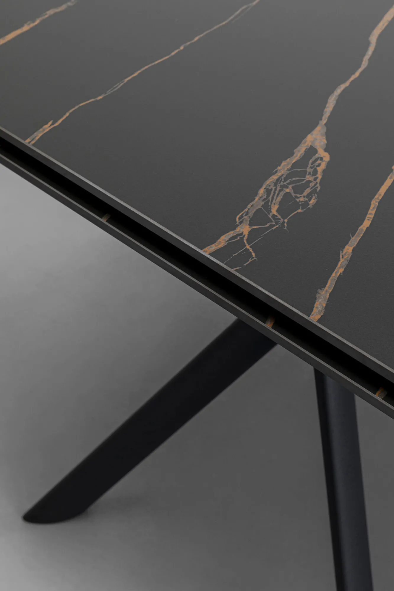 Stół rozkładany blat czarny kamionkowy nogi stalowe 140-200×80 cm