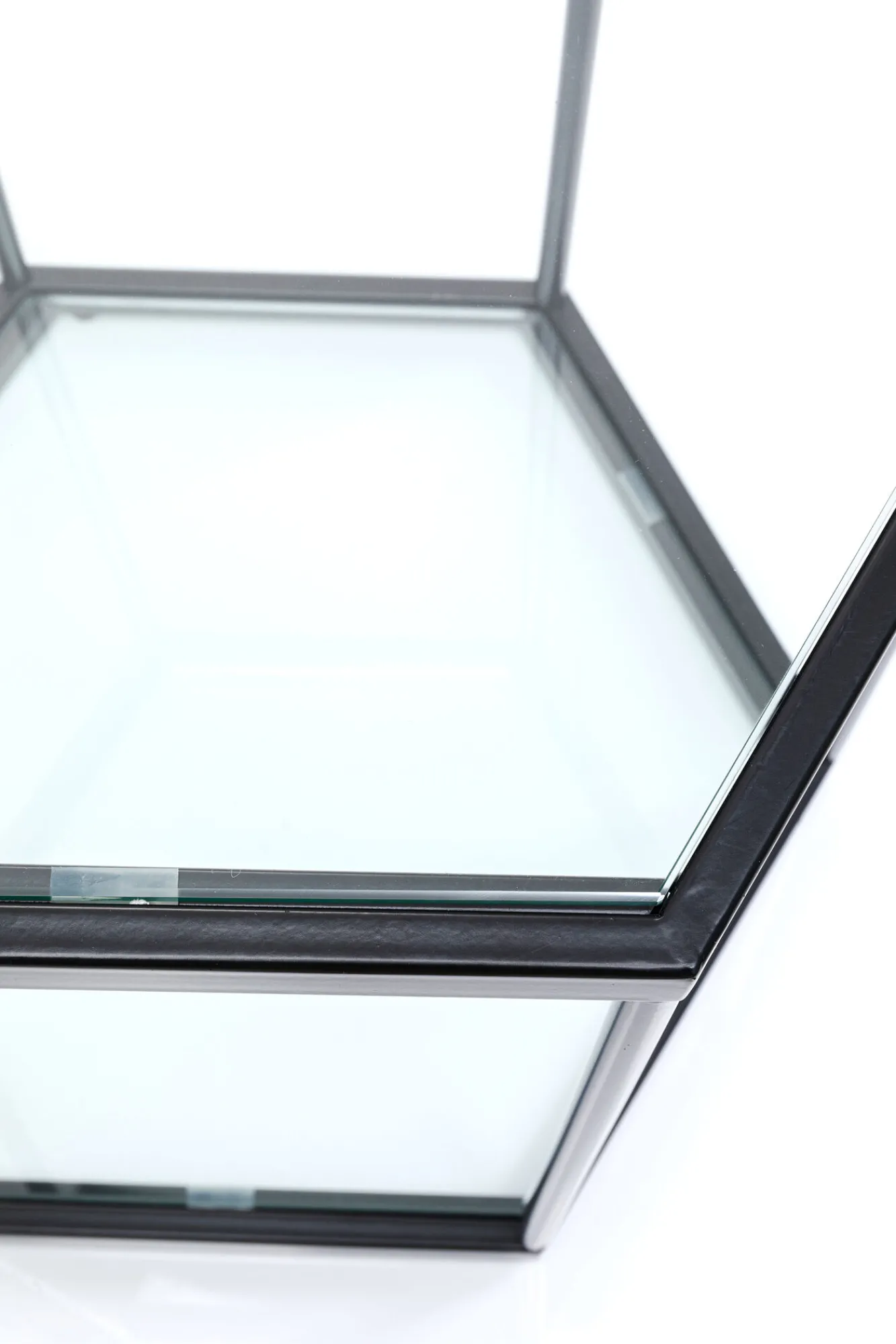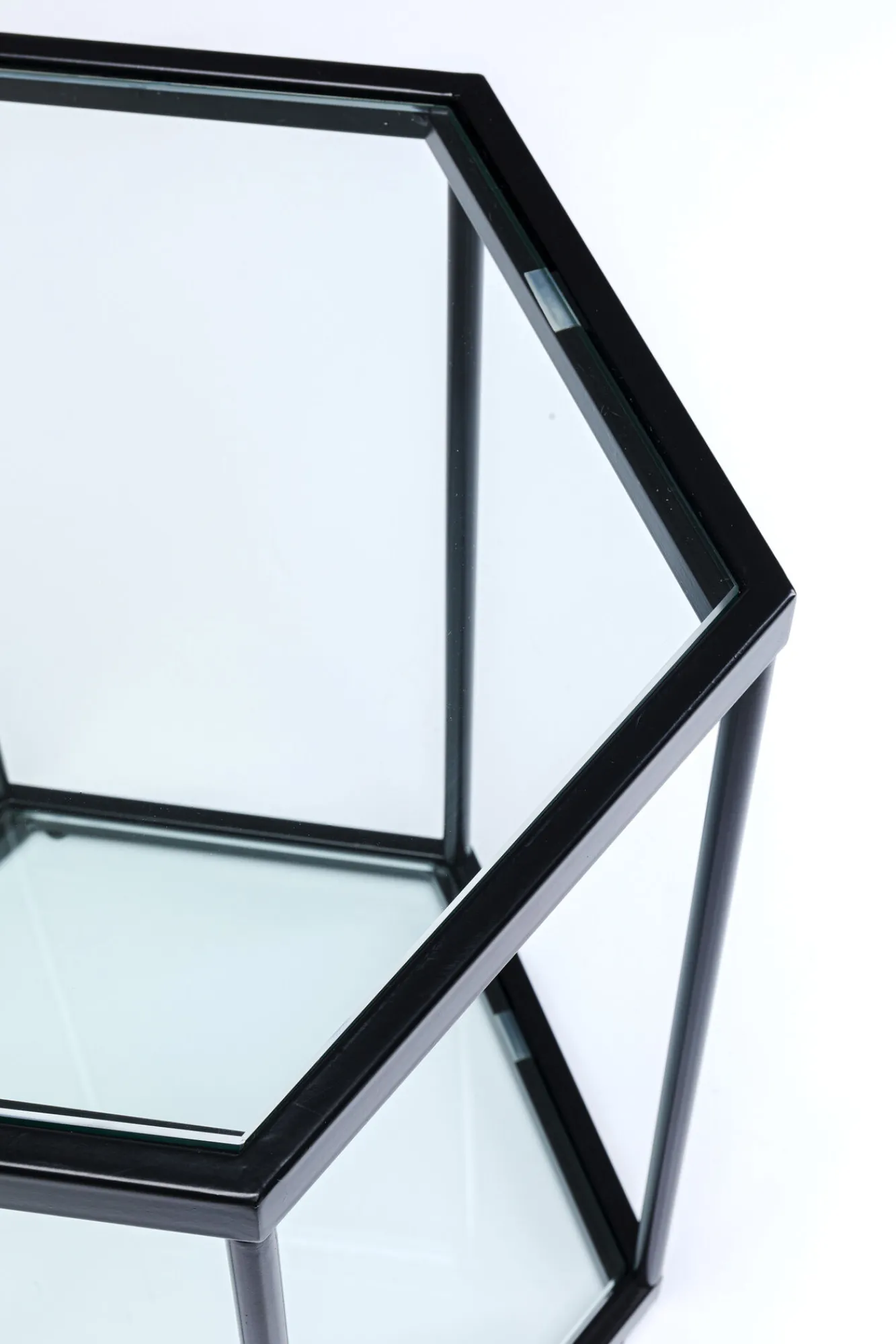 Stolik kawowy Comb 55xH55 cm czarny – blat szklany Rama: stal malowana proszkowo.Blat, półka: szkło bezpieczne, trans…