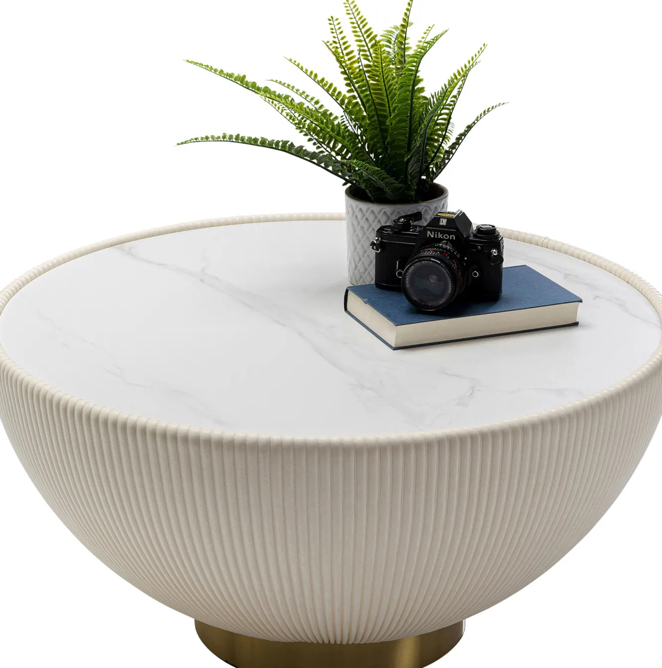 Stolik kawowy okrągły biały podstawa złota Ø71 cm