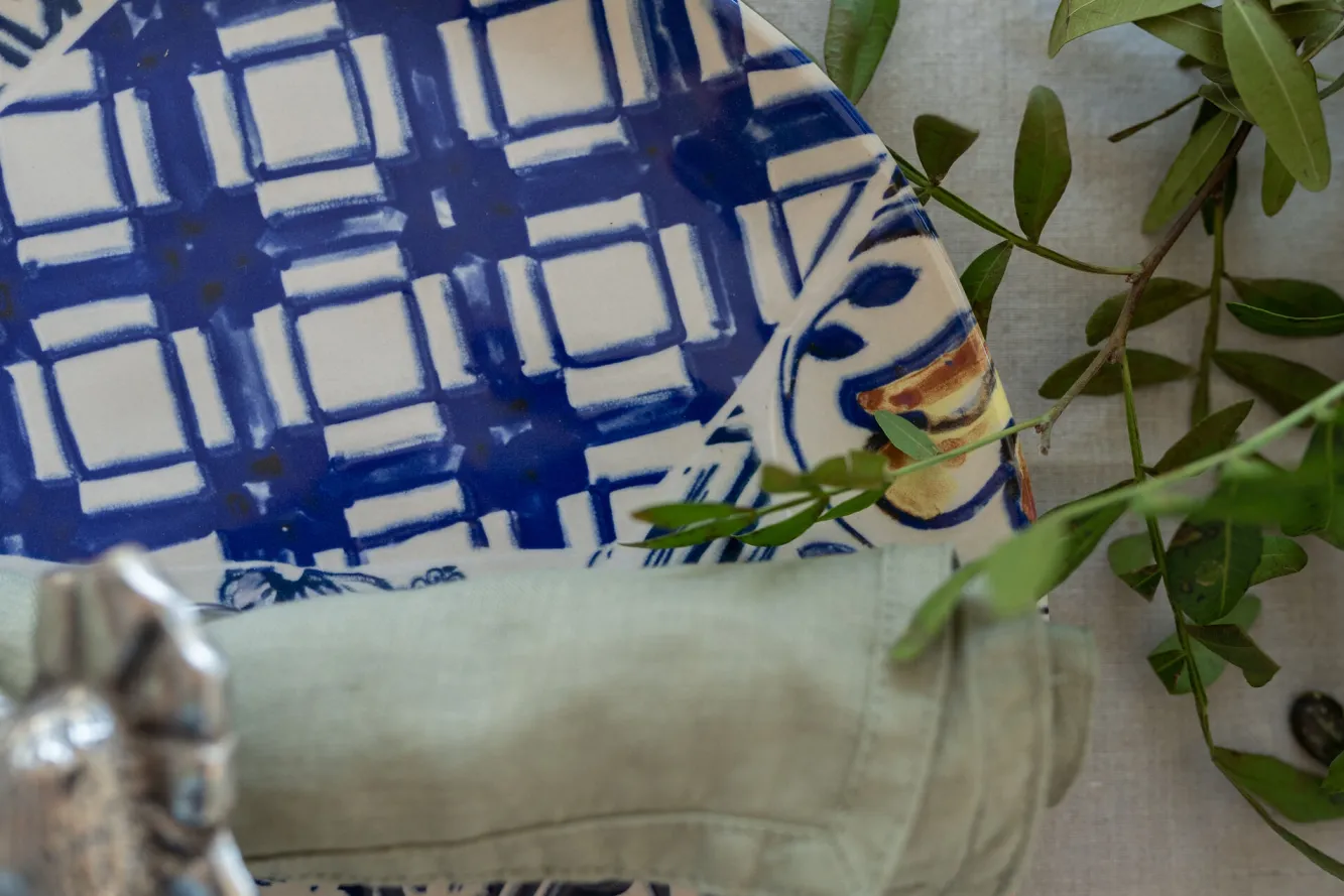 Talerz deserowy Fresco Ø21 cm biało-niebieski Produkty wykonane z kamionki mogą nieznacznie różnić się między so…