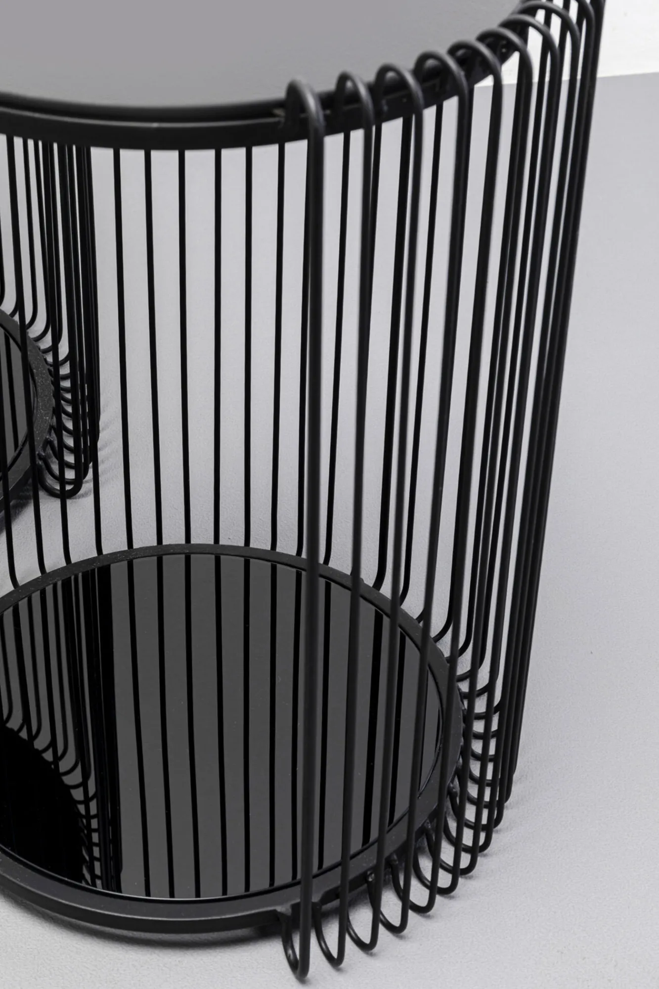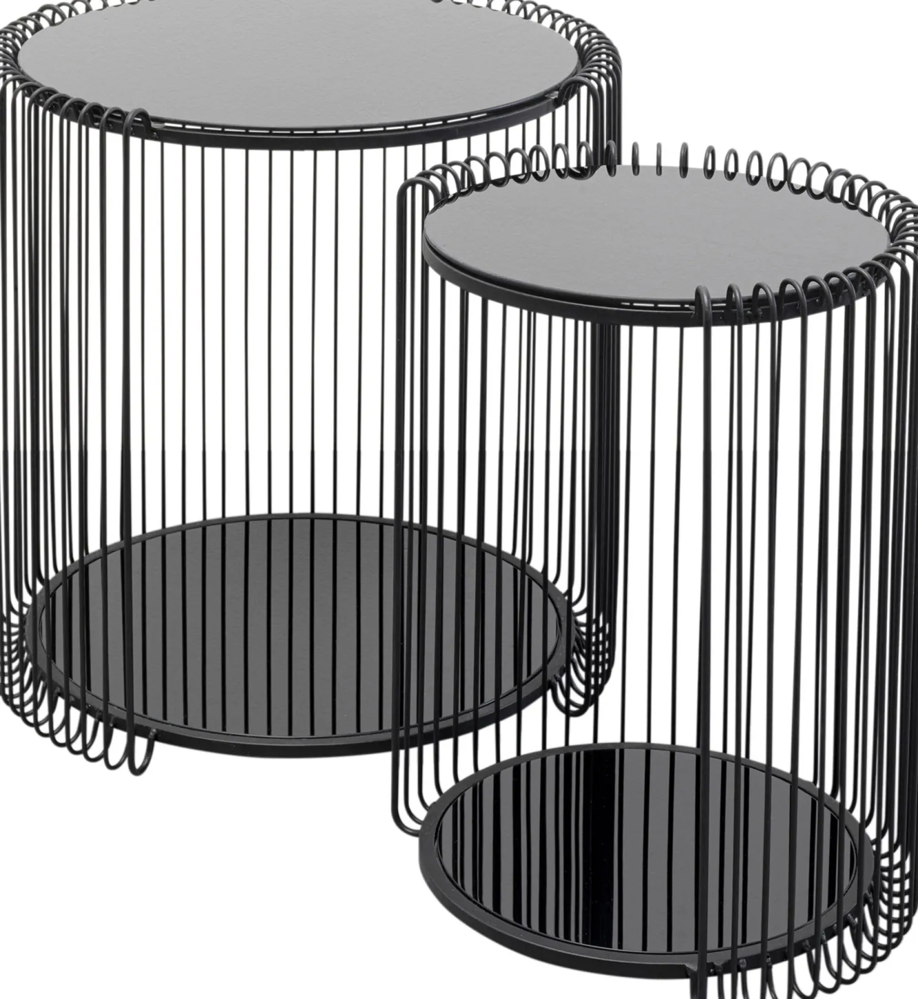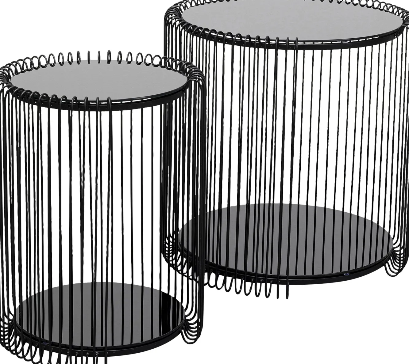 Zestaw 2 stolików pomocniczych czarnych blaty i półki szklane rama stalowa Podane wymiary dotyczą większego stolika…