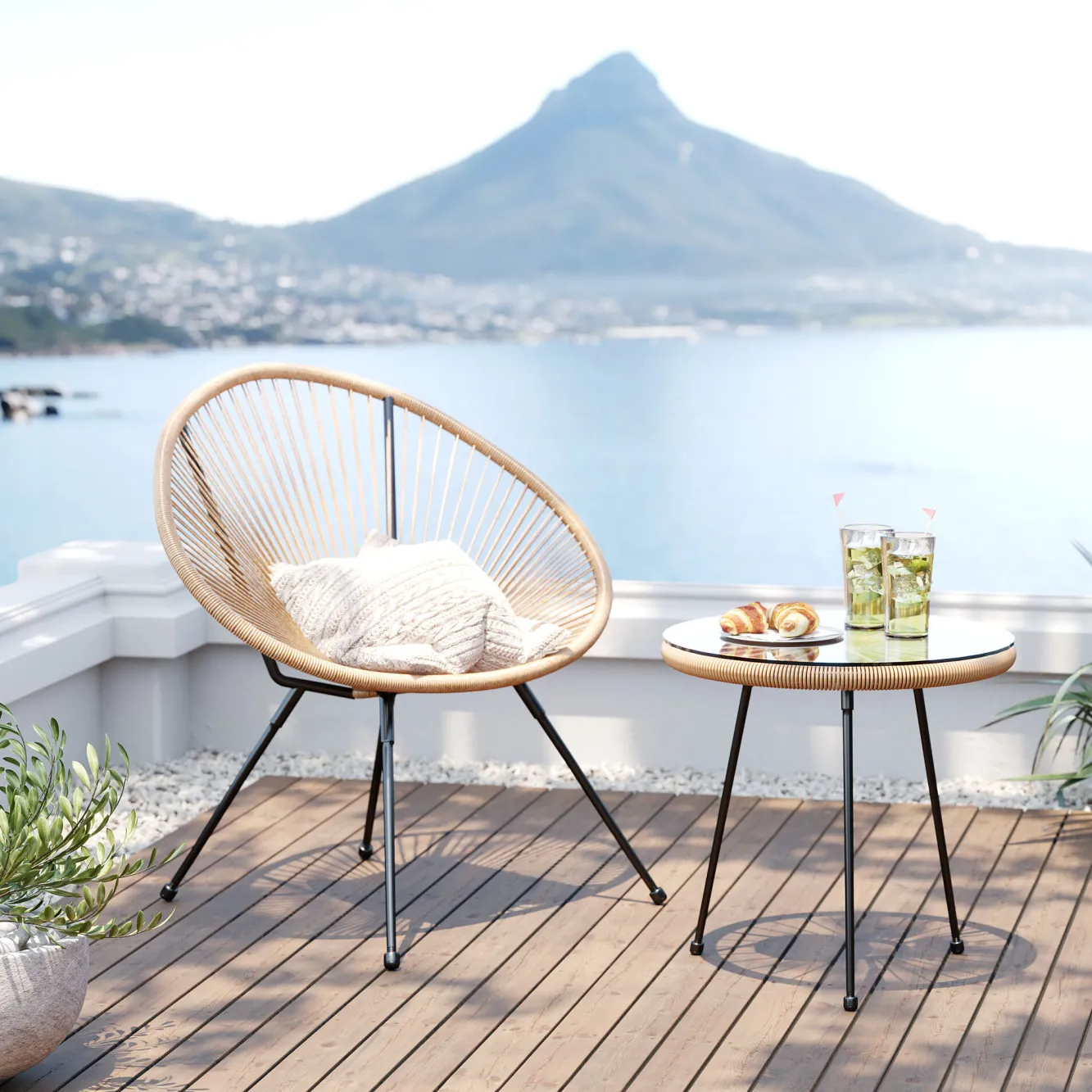 Zestaw ogrodowy fotel żyłkowy i stolik okrągły kolor naturalny