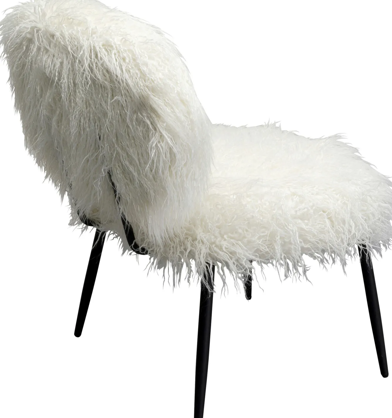 Fotel futrzak biały nogi czarne stalowe 63×78 cm