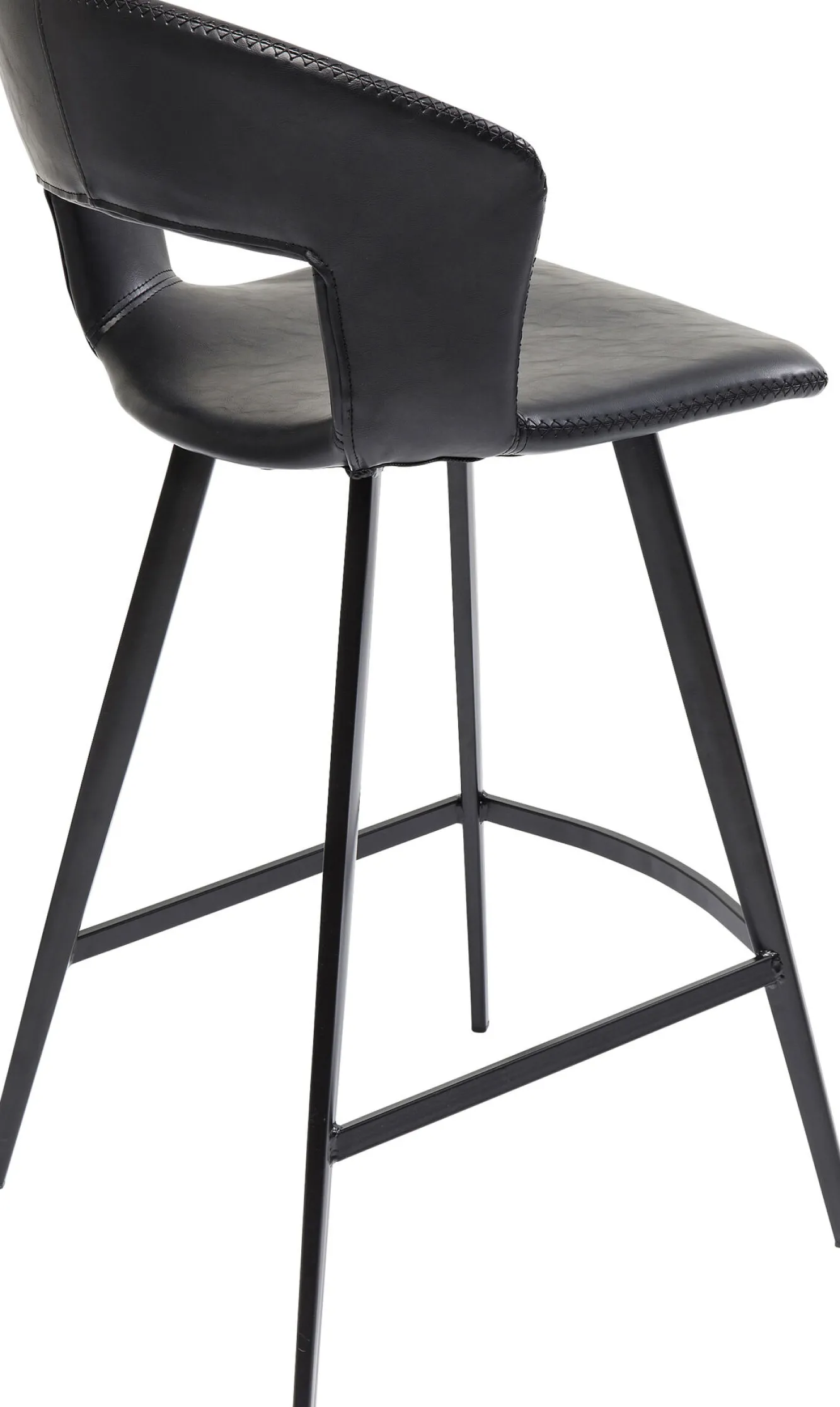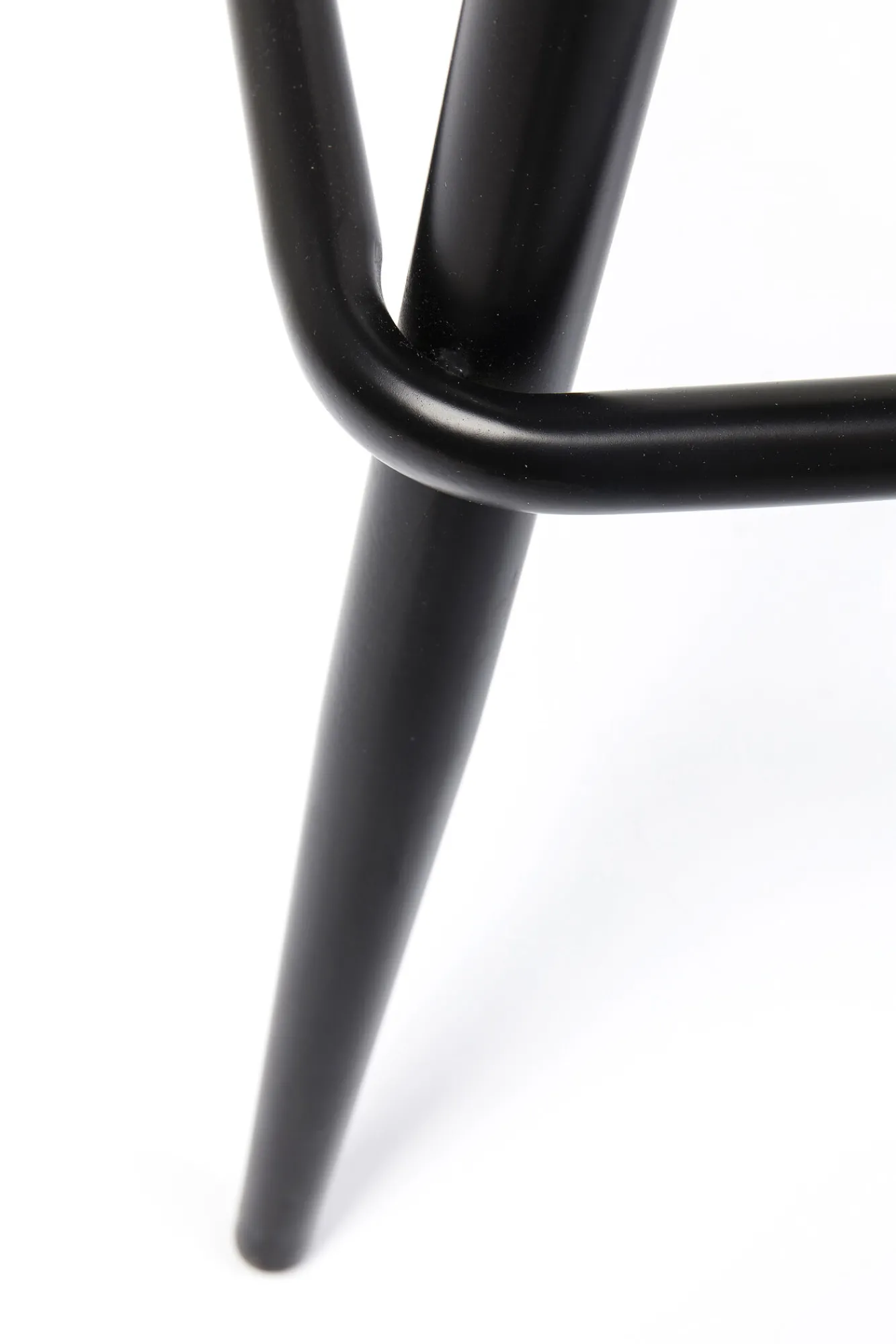 Seria czarnych mebli w stylu industrialnym Reunion oferuje kilka rodzajów elementów wyposażenia wnętrza – tutaj hoker z ekoskóry w kolorze czarnym na stalowych nogach.