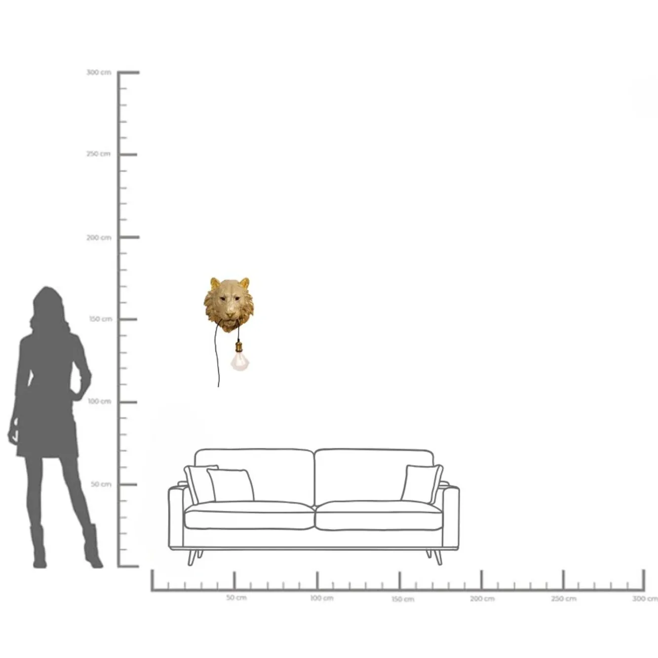 Kinkiet Tiger Head 34×38 cm złoty 230 V, 50/60 Hz.