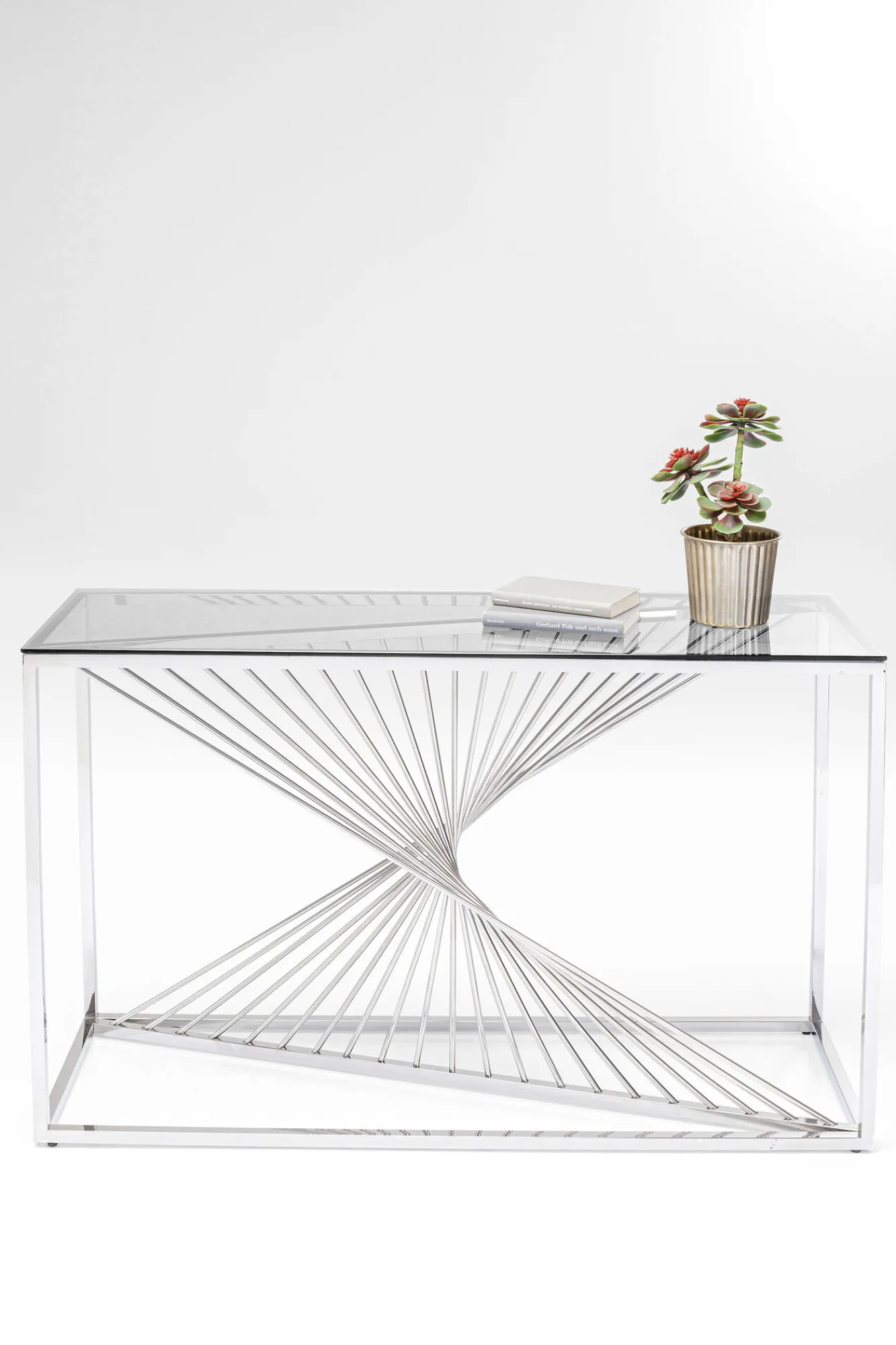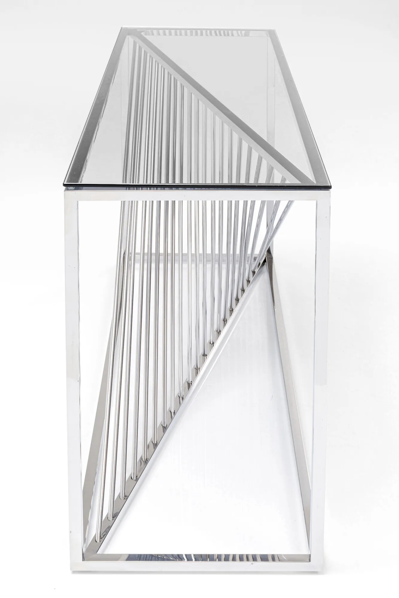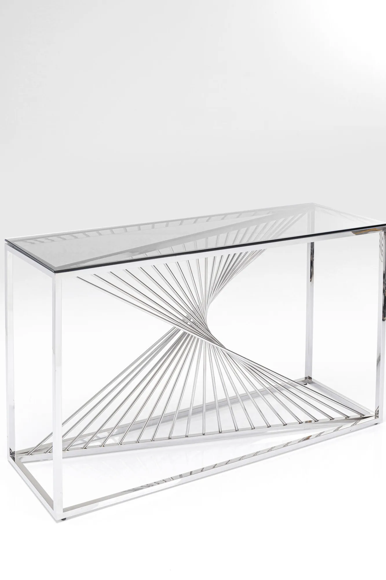 Konsola Laser 120×40 cm srebrna Rama: stal nierdzewna polerowana, Blat: szkło hartowane 8 mm Max obciążenie: 30 kg