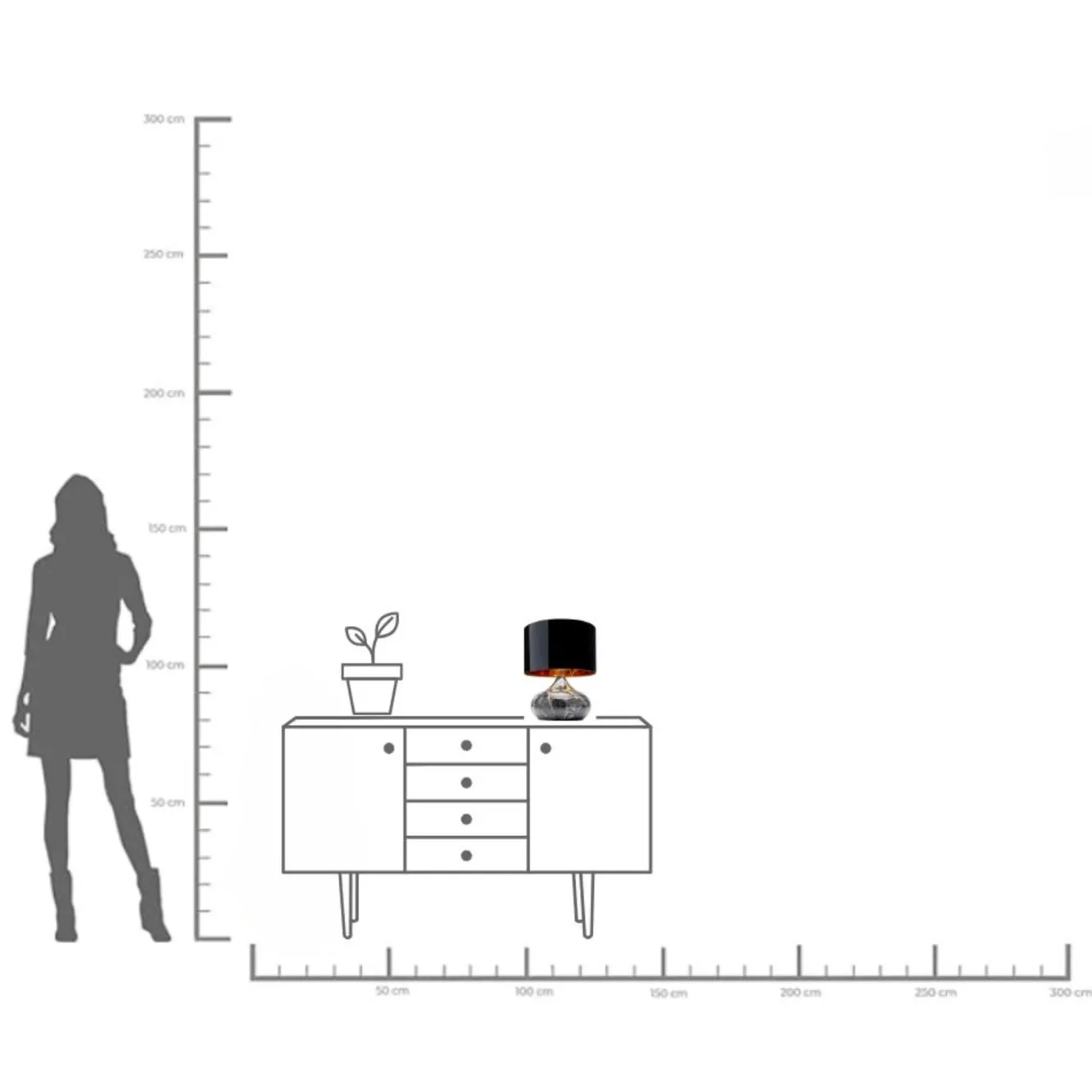 Lampa stołowa Mamo Deluxe Ø31×38 cm szara – klosz czarny Podstawa: stal lakierowana.Klosz: tworzywo sztuczne (PCW).