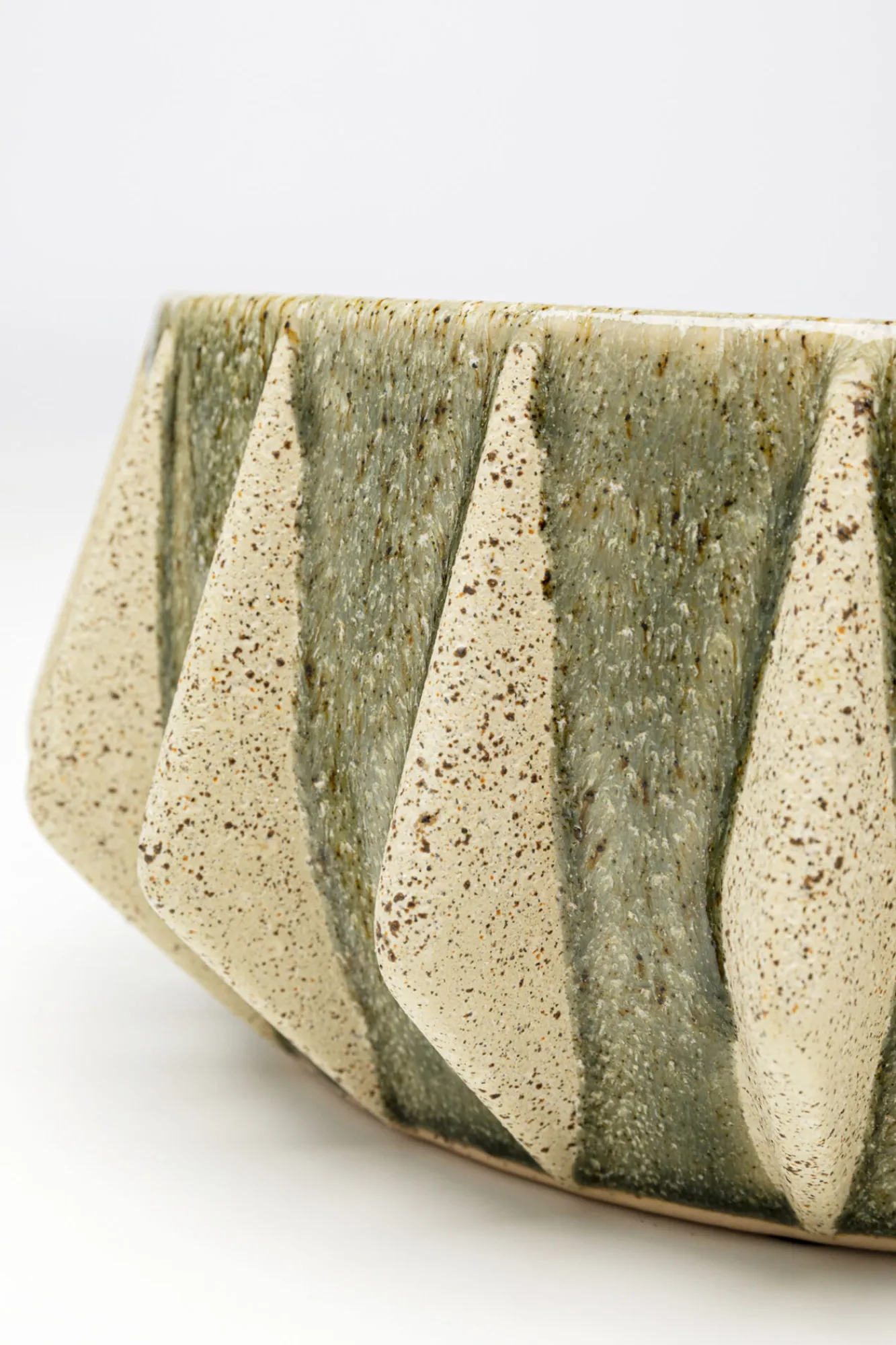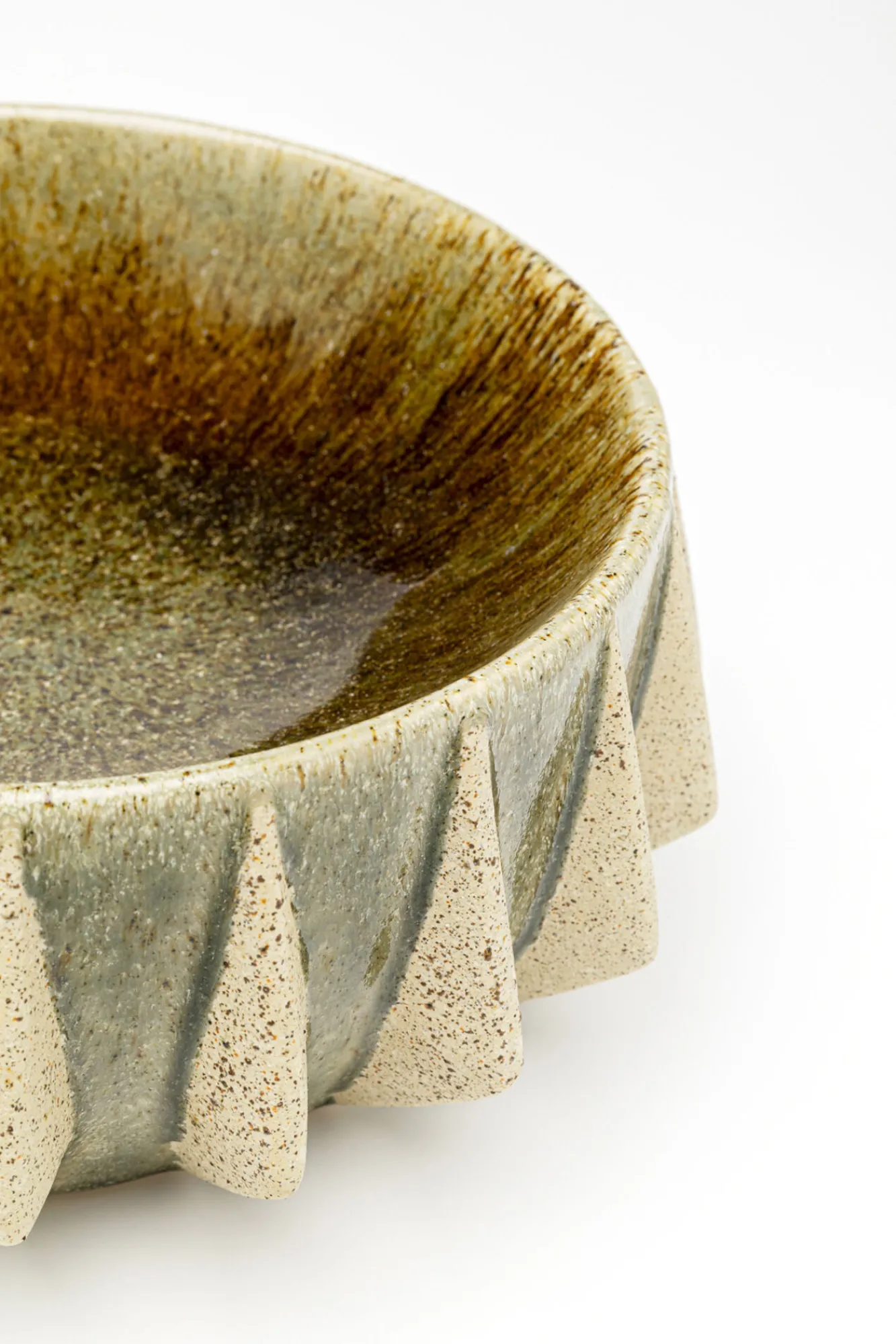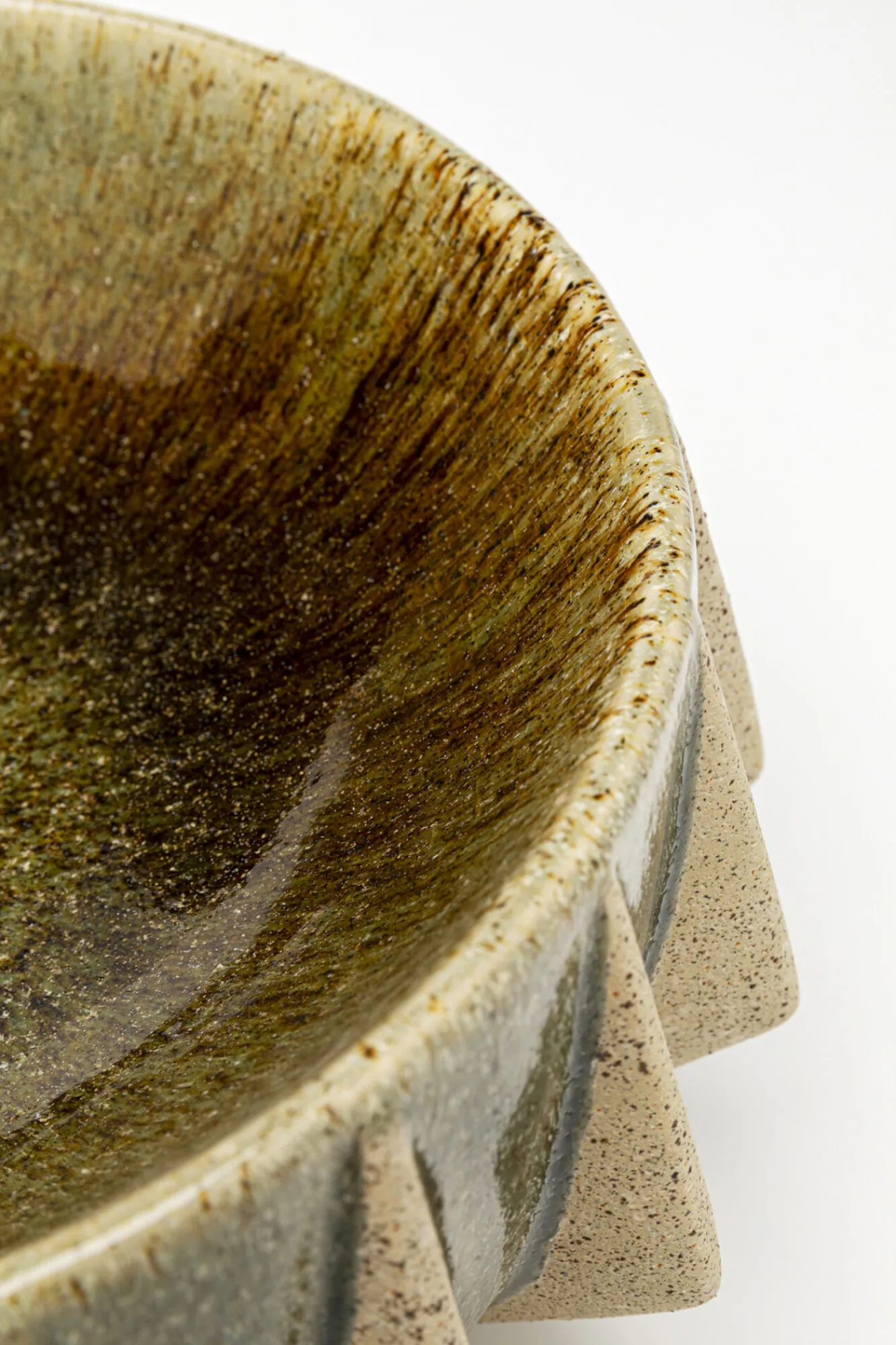 Misa dekoracyjna z kamionki beżowo-zielona Ø30 cm