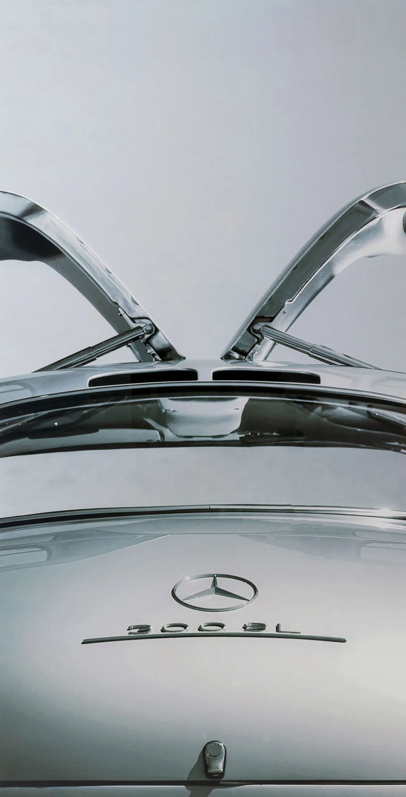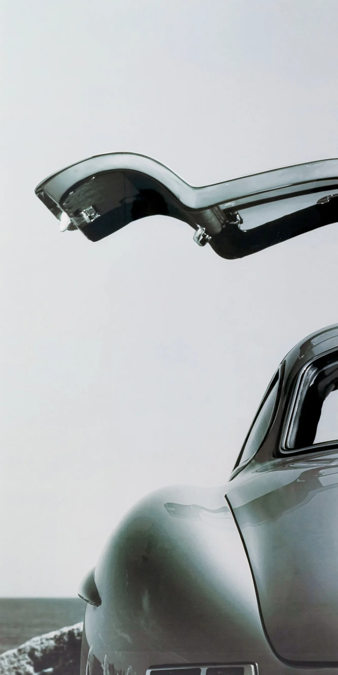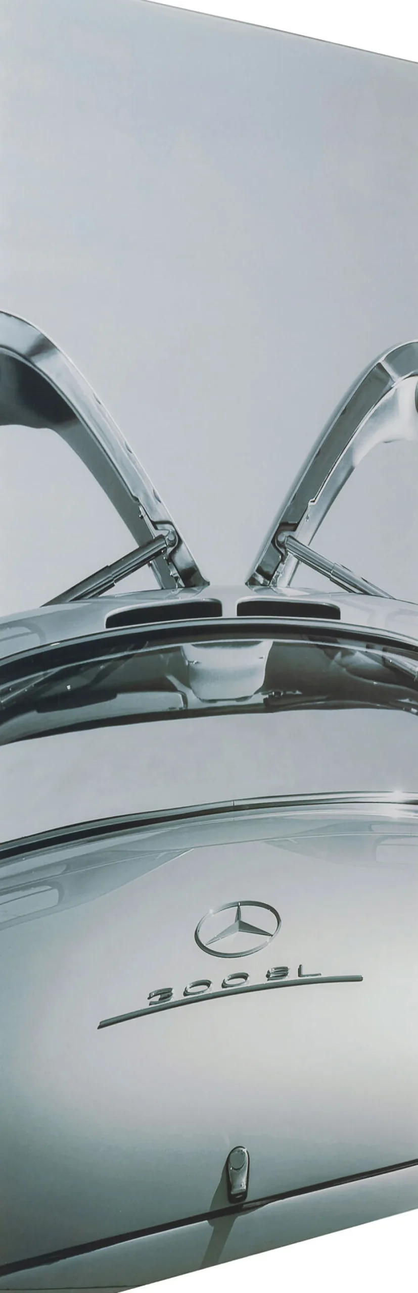 Obraz przedstawia kultowego Mercedesa 300 SL.