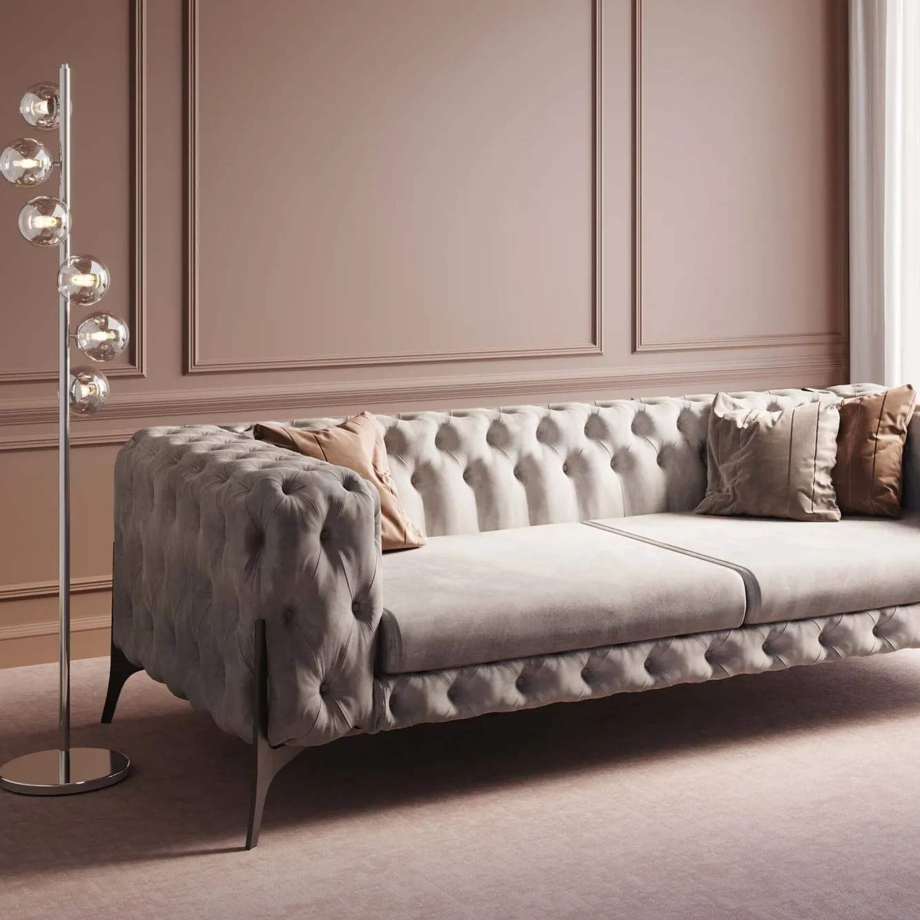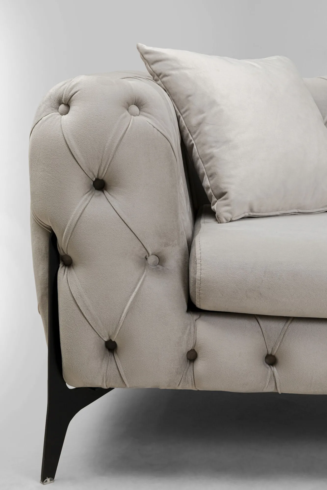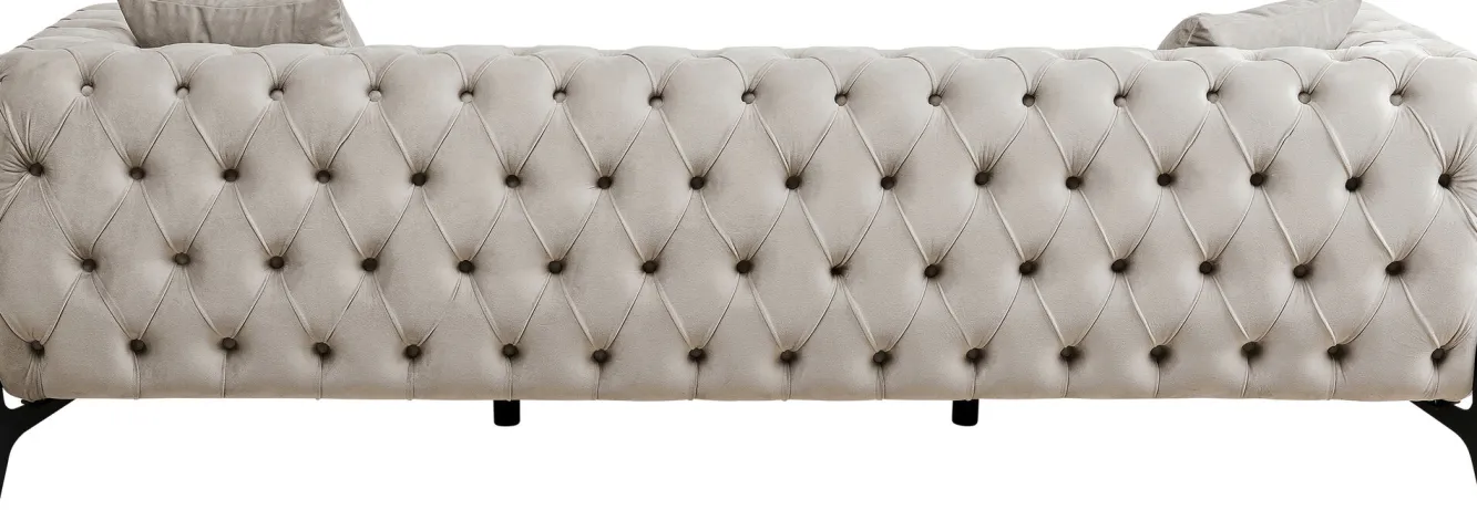 Sofa 3-osobowa welurowa pikowana beżowa glamour 240 cm nogi czarne