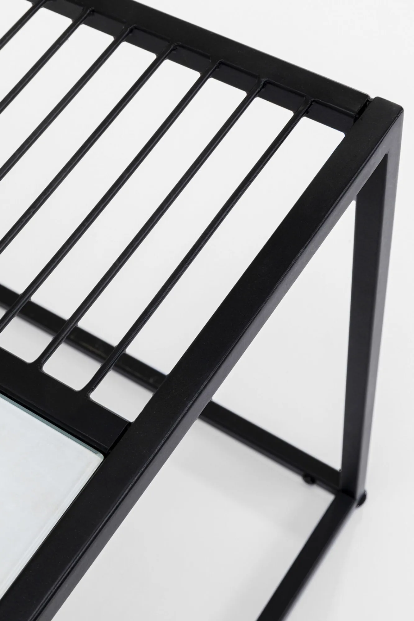 Stolik pomocniczy czarny blat szklany 45×45 cm Rama: stal malowana proszkowo.Blat: szkło bezpieczne, hartowane.