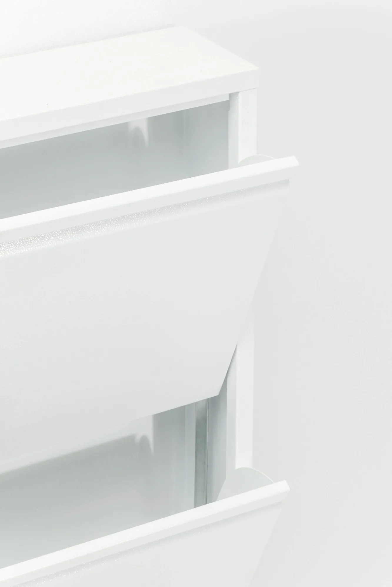 Nowoczesne stalowe szafki na buty w stylu minimalistycznym z serii Caruso MO oferują szeroki wybór wariantów – tutaj biała szafka na buty ze stali z 3 półkami.