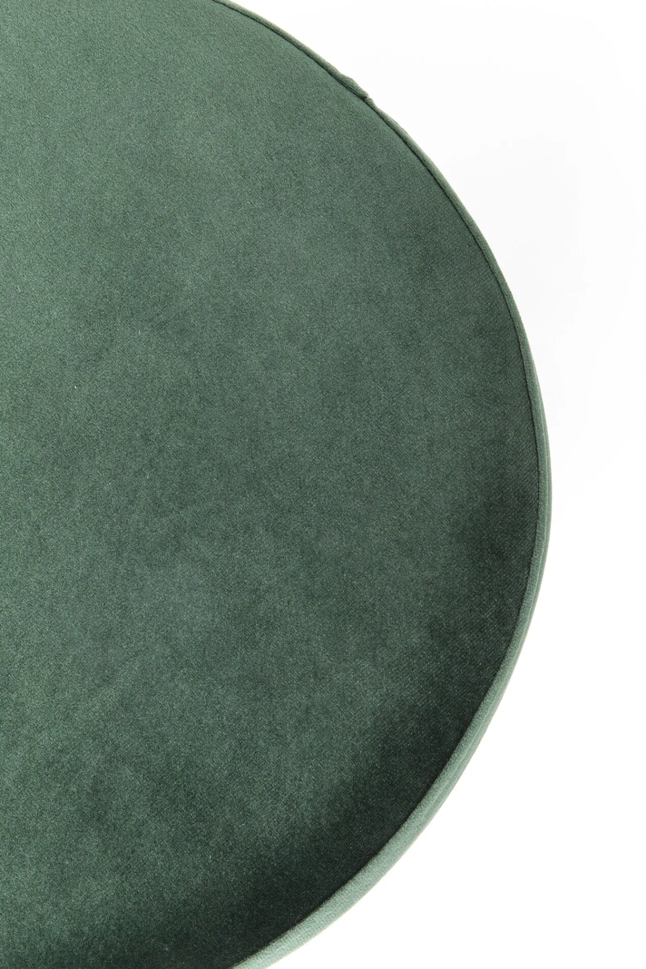 Nowoczesne tapicerowane taborety w stylu glamour Cherry oferują szeroki wybór wariantów – tutaj ciemnozielony taboret ze złotą podstawą o średnicy 35 cm.