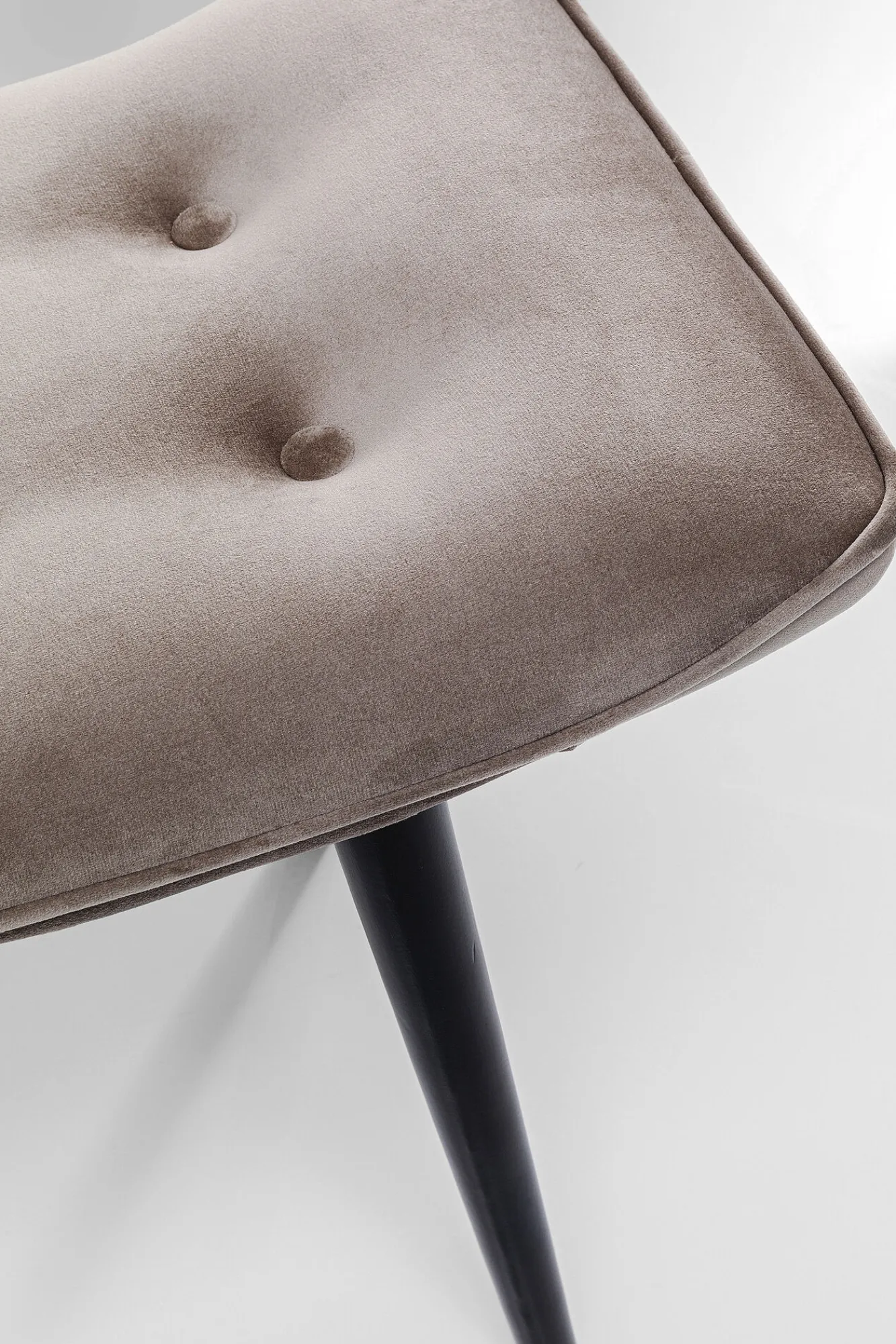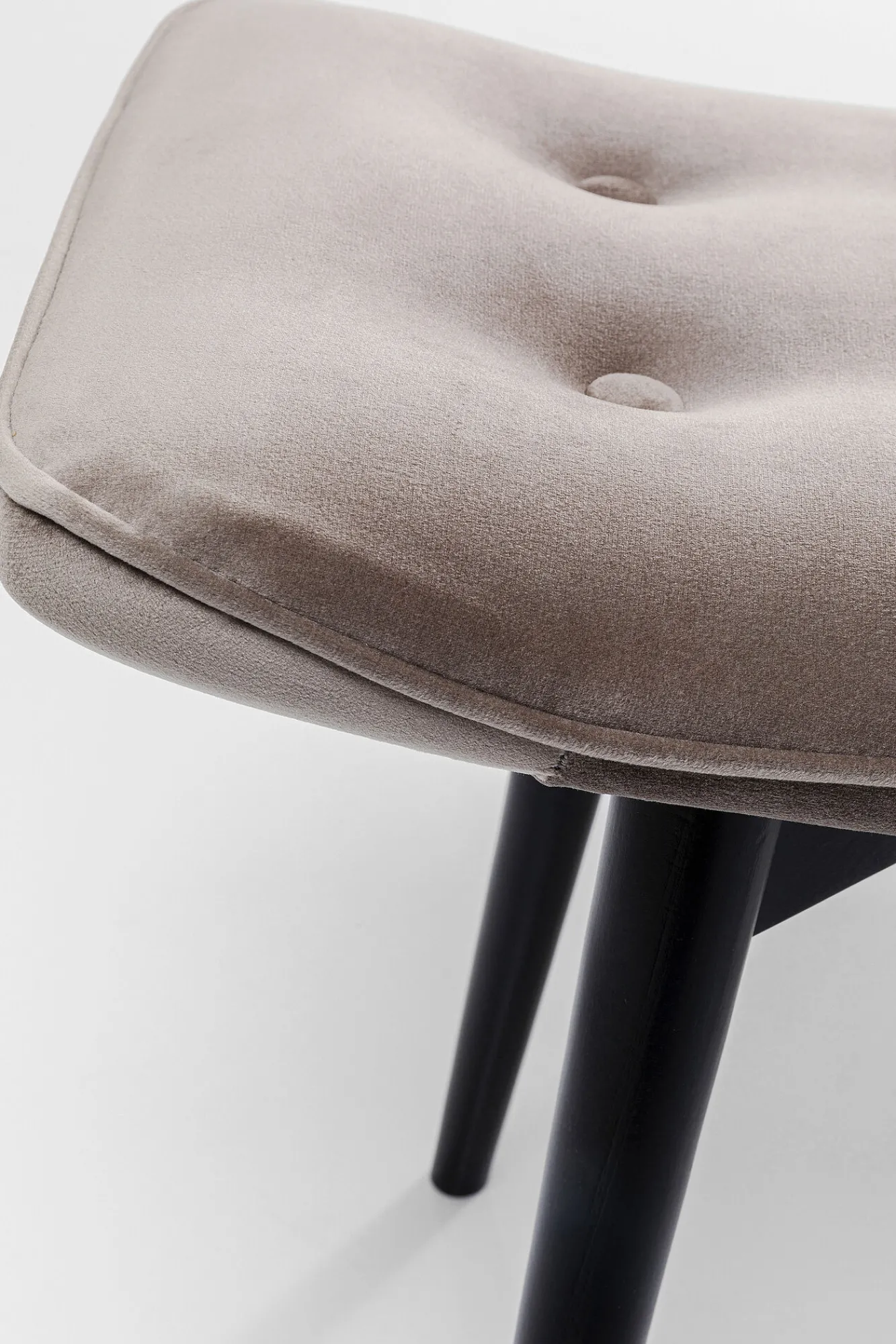 Nowoczesny tapicerowany taboret drewniany w stylu skandynawskim z serii Vicky Velvet to znamienite połączenie stylu i komfortu. Autorką tej propozycji jest wiodąca firma KARE, słynąca z bezkompromisowości i trudnego do podrobienia wzornictwa. Niemiecka marka w swoich projektach znajduje miejsce zarówno dla jakości, funkcjonalności, dekoracyjności, jak i ducha awangardy. W tym przypadku producent oferuje czarujący mebel zapewniający wysoki standard wygody i popularny retro design. Miękkie, pluszowe obicie doskonale współpracuje ze światłem, dlatego jest cenione za swój dekoracyjny charakter. Nie mniej eleganckie są ozdobne guziki siedzenia. Ekskluzywną jakość prezentowany drewniany taboret welurowy zawdzięcza nogom z solidnego drewna bukowego – króla drzew liściastych. Z uwagi na subtelny charakter i ponadczasową estetykę, ten tapicerowany taboret pomyślnie wkomponuje się w dowolną współczesną aranżację.