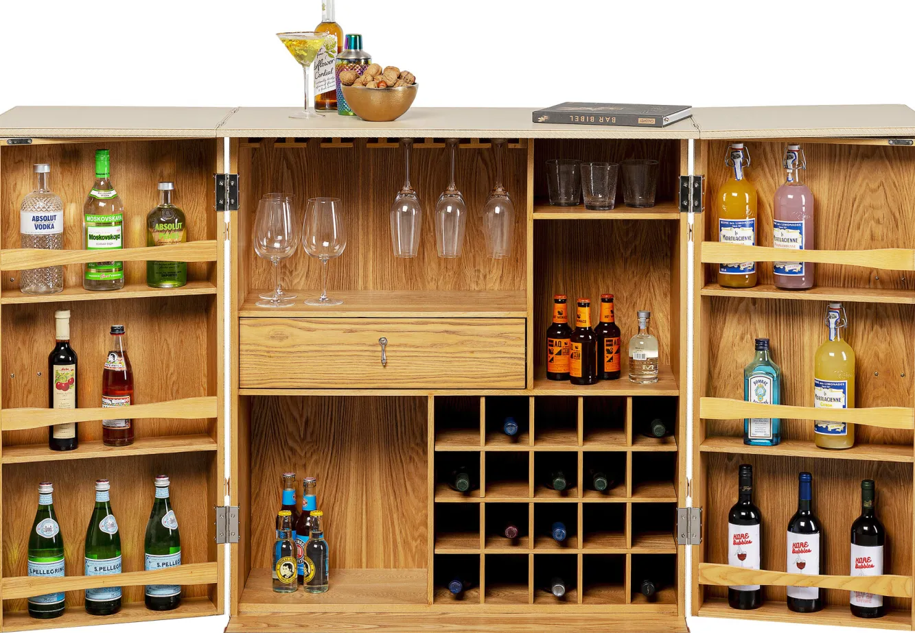 Barek rozkładany kremowy tapicerowany 100×114 cm Konstrukcja: płyta MDF lakierowana, skejka fornirowana (jesionowa).Za…