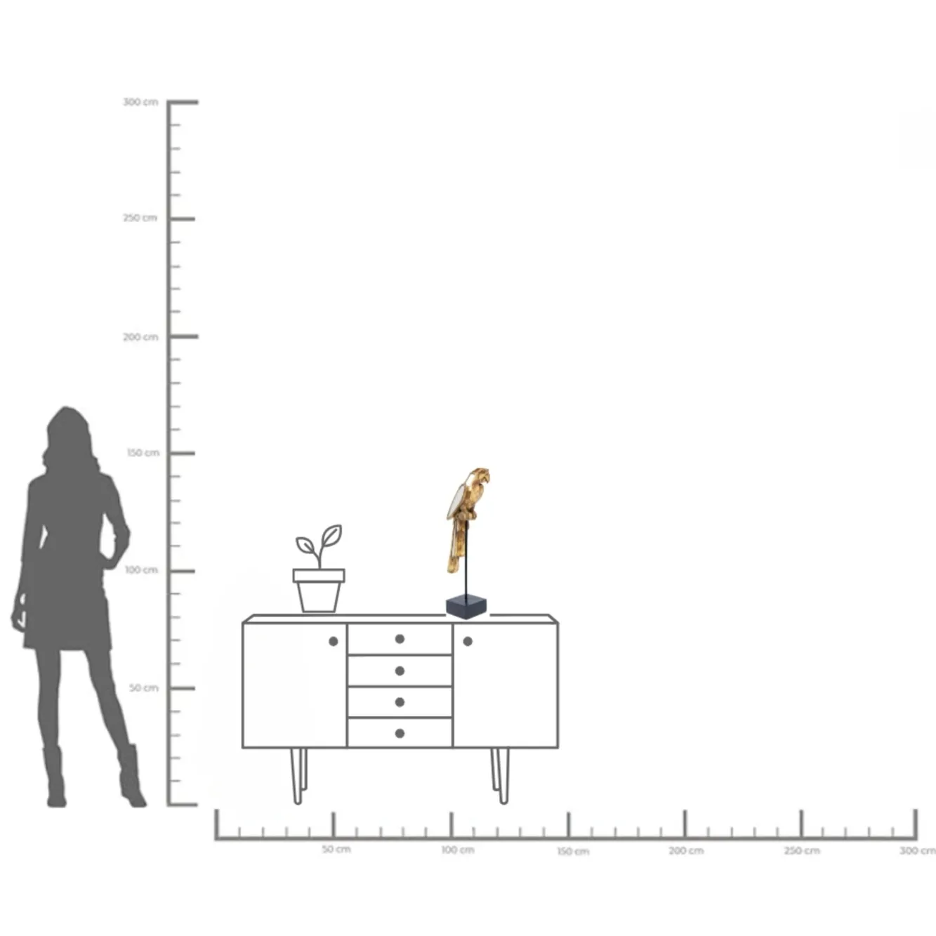 Figurka dekoracyjna Parrot 53 cm złota postarzana – lustrzana Materiały: polirezyna, szkło lustrzane.