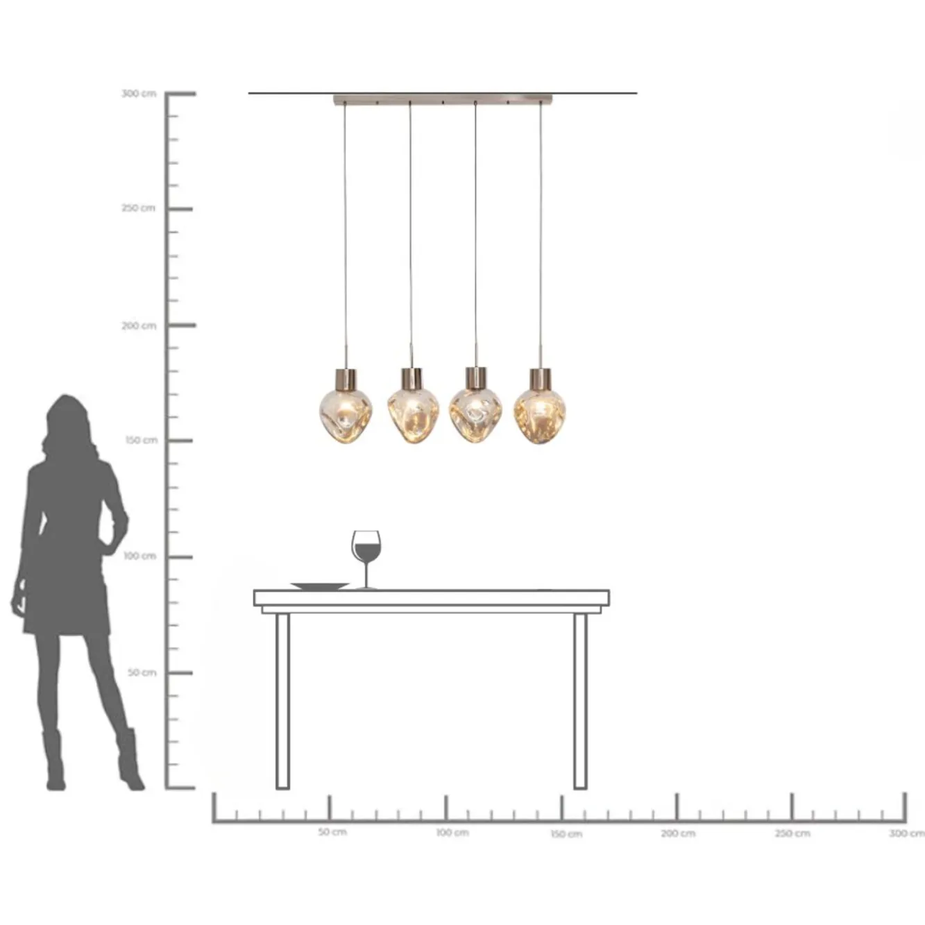 Lampa wisząca przydymiona 4L stal i szkło 110 cm Materiały: stal z wykończeniem chromowanym, szkło galwanizowane.Wy…
