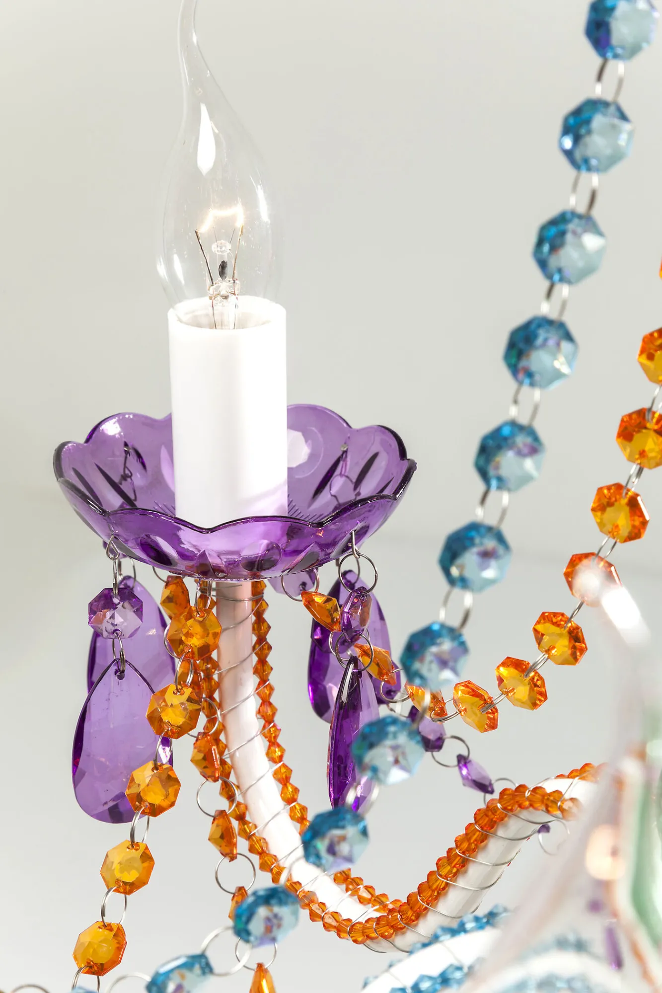 Modny żyrandol we wszystkich kolorach tęczy – barokowa symfonia w formie stylowej lampy wiszącej z mnóstwem bogatych detali. Lampa w stylu żyrandola, w odświeżającym jazzowym stroju z indywidualną kolorystyką. Wiele akrylowych diamentów dynda elegancko i błyszczą jaskrawo, tworząc magiczne efekty koloru i światła, gdy lampa jest włączona. Ale nawet gdy nie jest włączony, lampa wisząca Starlight Rainbow jest efektownym przyciągaczem oczu, który doda niekonwencjonalnego, żywego dotyku każdemu otoczeniu.Dane techniczne:-Klasa energetyczna A-E-230V-50/60Hz-Gwint E14-Ilość żarówek: 6 szt.-Max. 40WZestaw nie zawiera żarówek. Modny żyrandol we wszystkich kolorach tęczy – barokowa symfonia w formie stylowej lampy wiszącej z mnóstwem bogatych detali. Lampa w stylu żyrandola, w odświeżającym jazzowym stroju z indywidualną kolorystyką. Wiele akrylowych diamentów dynda elegancko i błyszczą jaskrawo, tworząc magiczne efekty koloru i światła, gdy lampa jest włączona. Ale nawet gdy nie jest włączony, lampa wisząca Starlight Rainbow jest efektownym przyciągaczem oczu, który doda niekonwencjonalnego, żywego dotyku każdemu otoczeniu.Dane techniczne:-Klasa energetyczna A-E-230V-50/60Hz-Gwint E14-Ilość żarówek: 6 szt.-Max. 40WZestaw nie zawiera żarówek.