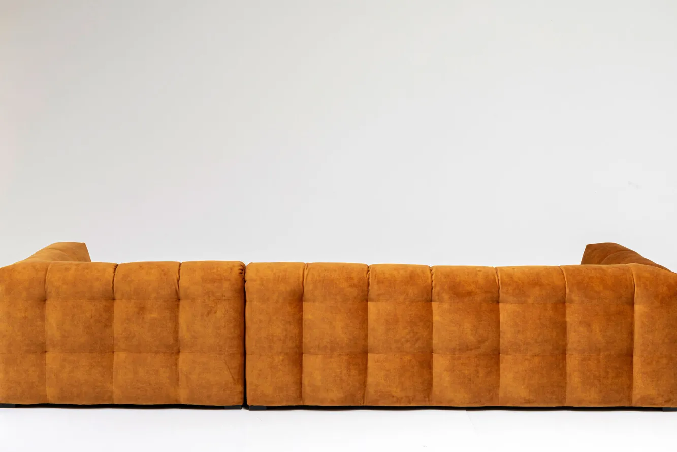 Narożnik pikowany prawy tkanina welurowa brązowa 320×170 cm