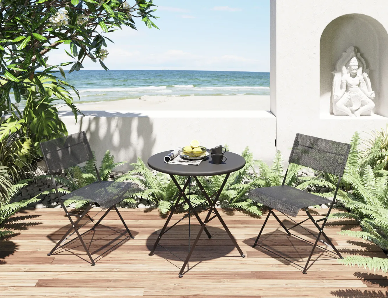 Zestaw ogrodowy składany 2 krzesła i stół kolor czarny