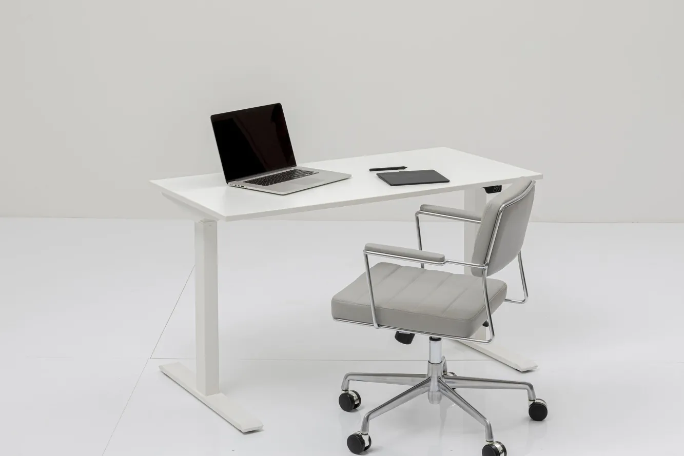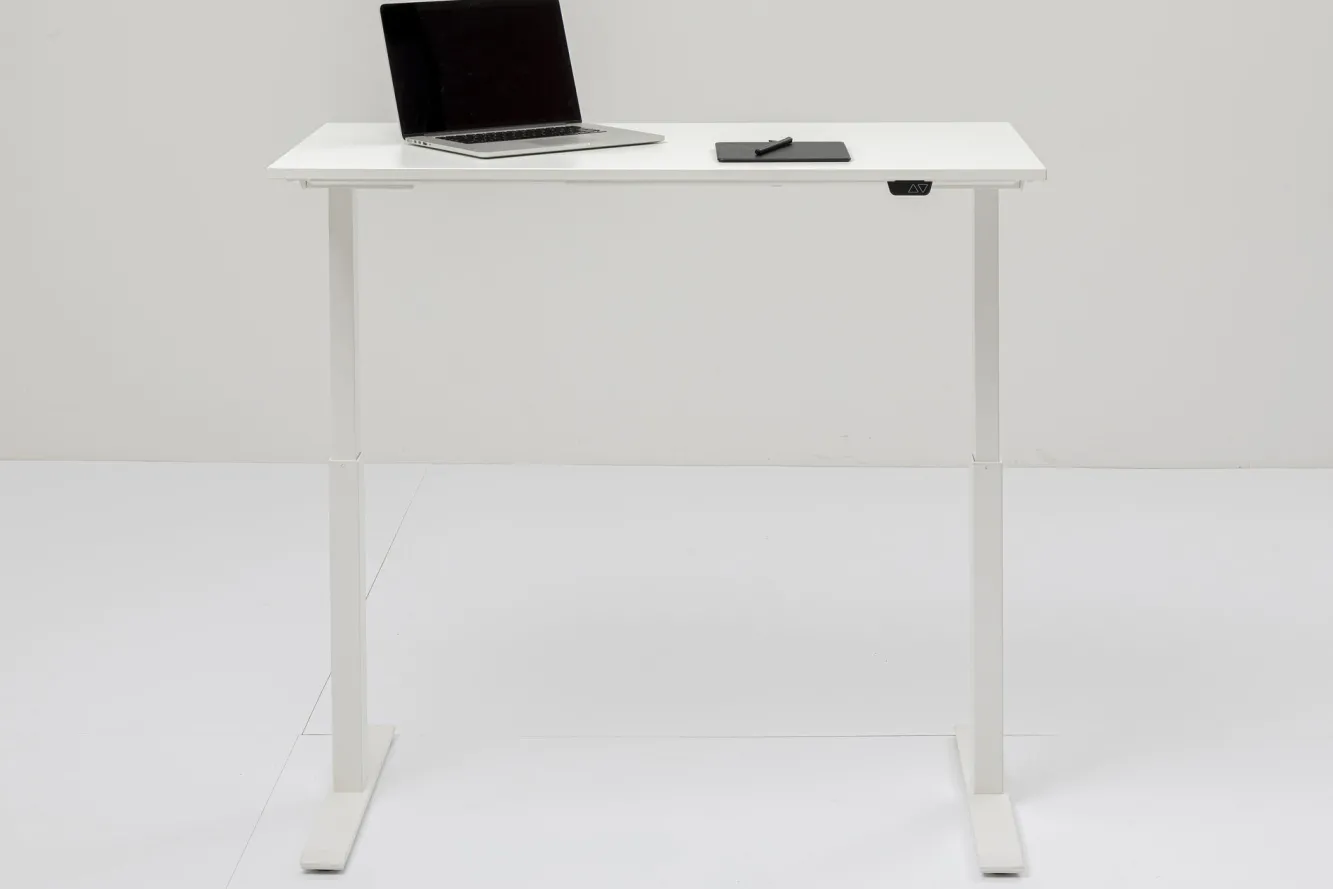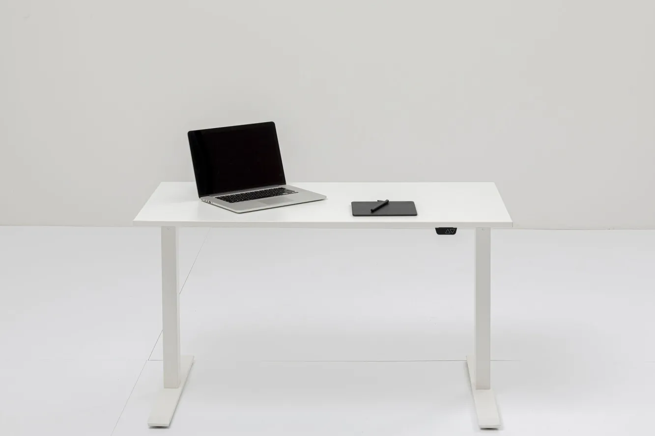 Biurko Smart 140×60 cm białe Rama: stal malowana proszkowo, Blat: płyta wiórowa melaminowana, Regulacja wysokości: 7…