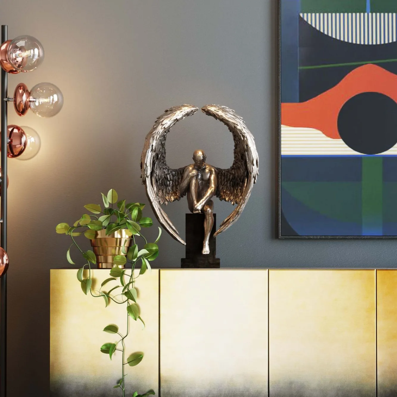 Figurka dekoracyjna Nude Sad Angel 48×63 cm brązowa