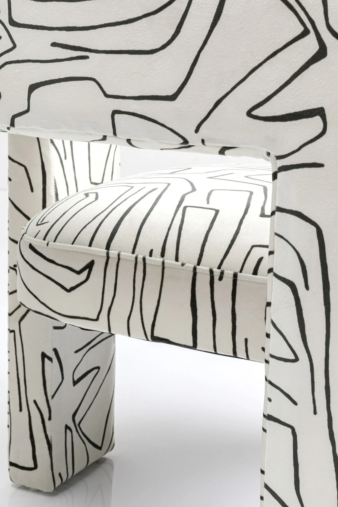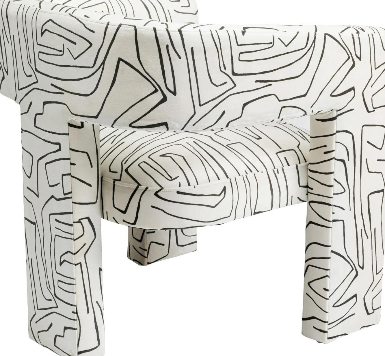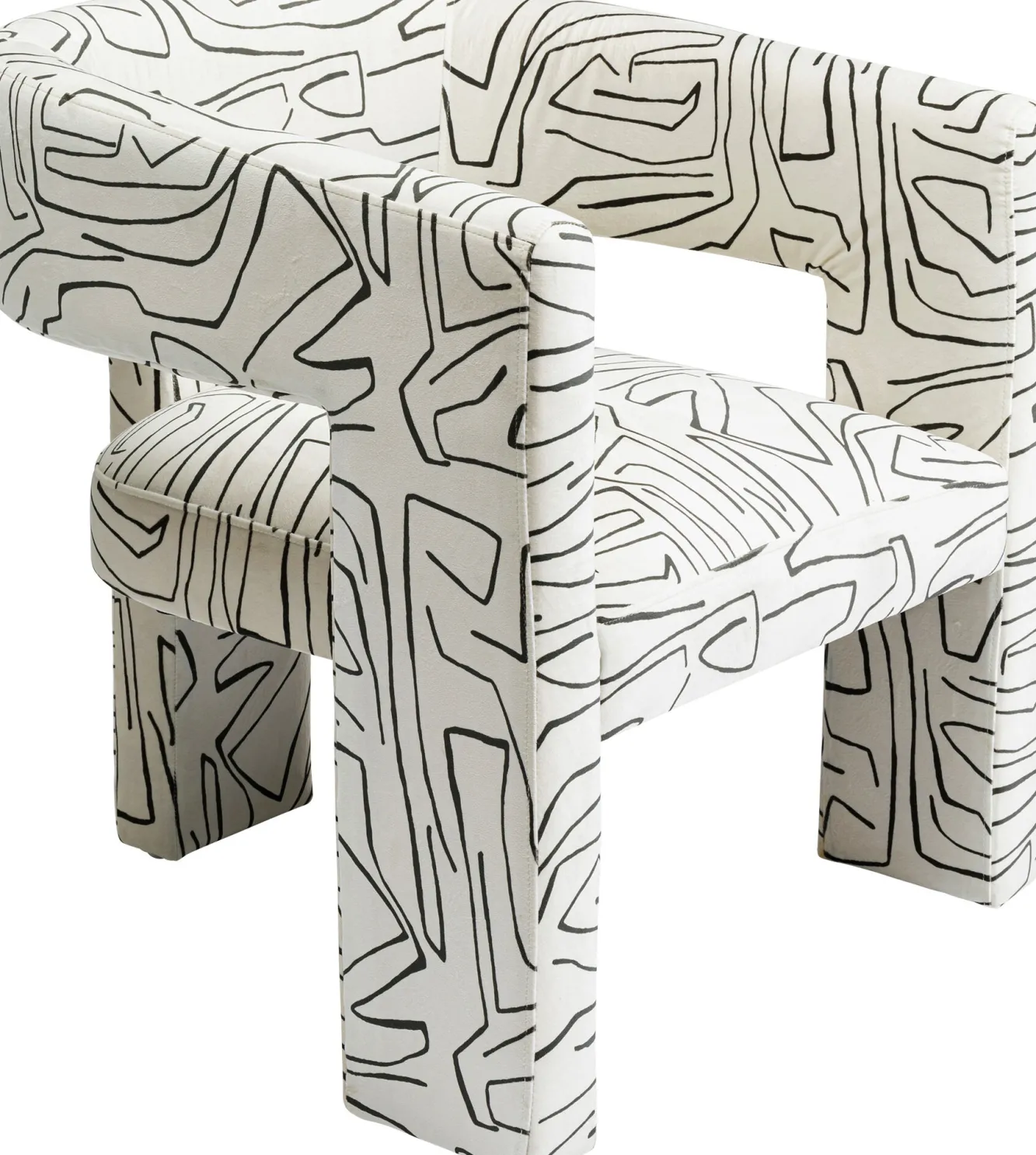 Fotel Tripod 70×71 cm biały – czarne wzory Rama: drewno brzozowe, sklejka, taśmy tapicerskie.Tapicerka: 100% poliester…