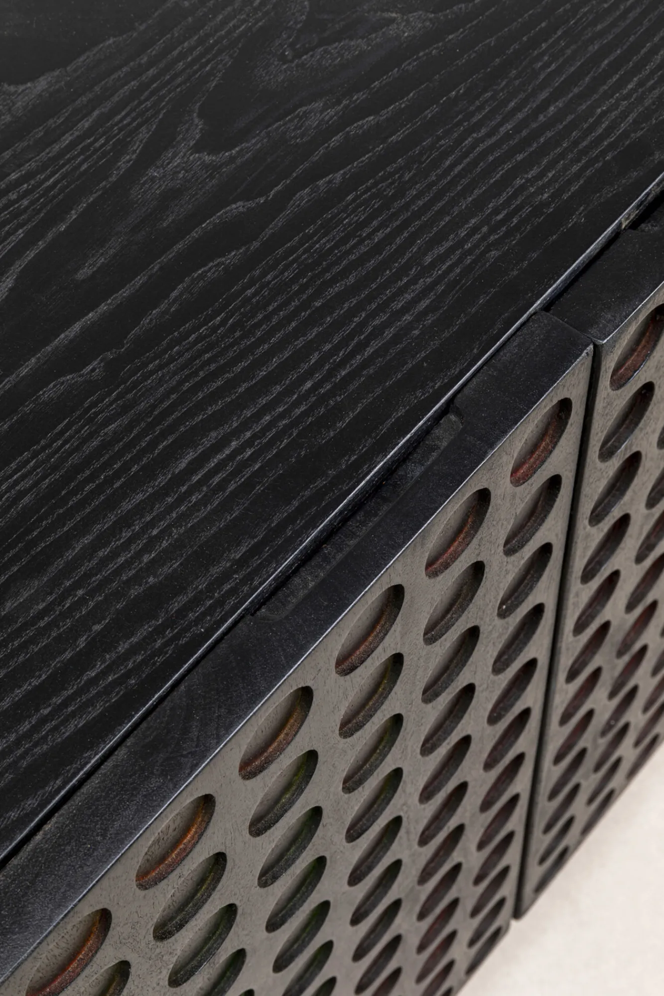 Materiały: drewno mango lakierowane (korpus i front), płyta MDF lakierowana (tył); płyta MDF fornirowana (powłoka zewnętrzna), stal malowana proszkowo (nogi).