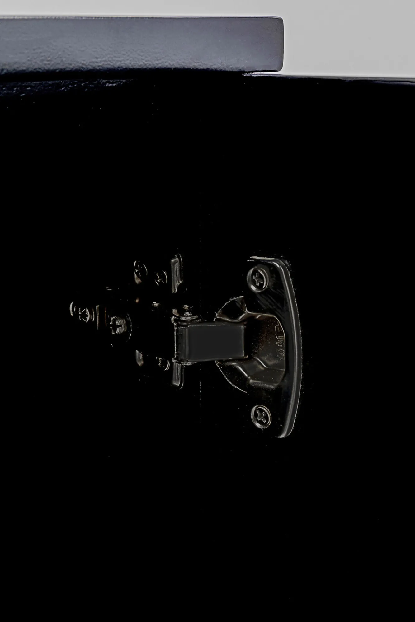 Komoda glamour czterodrzwiowa czarno-złota 165 cm Korpus: płyta MDF lakierowana.Podstawa: stal malowana proszkowo.Wzor…