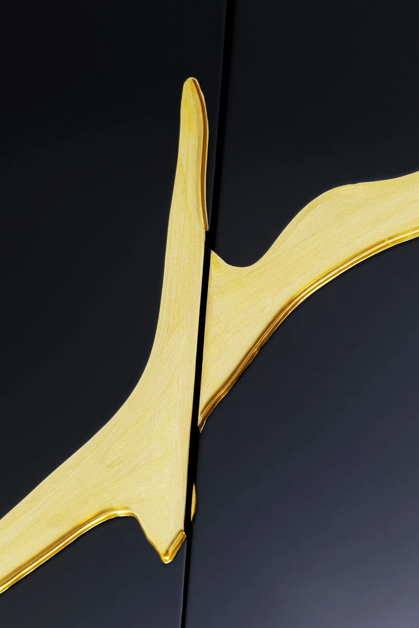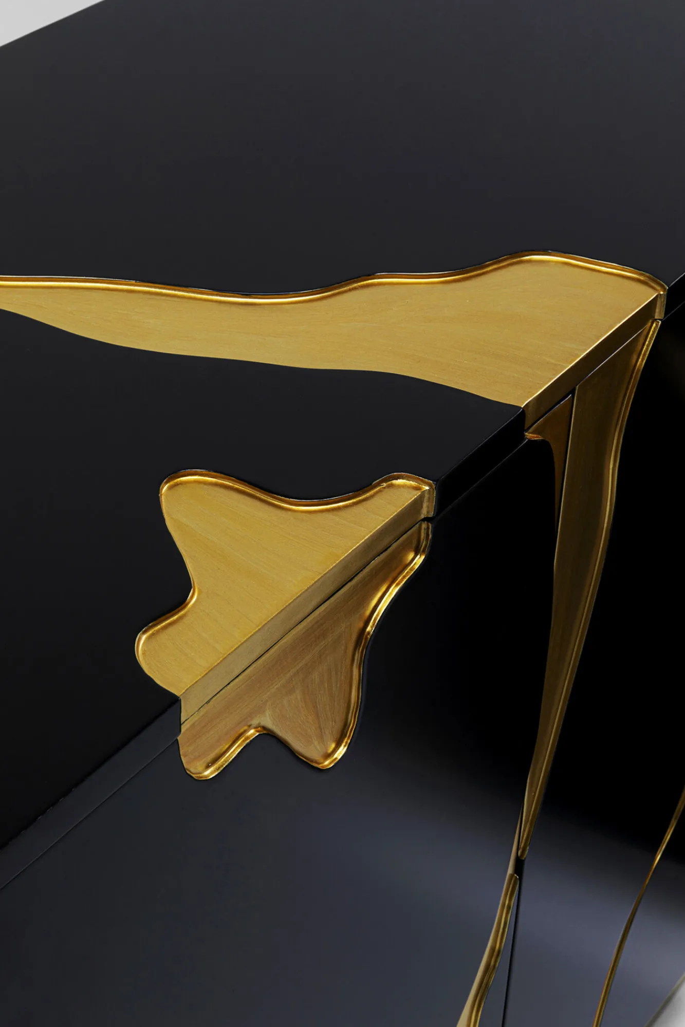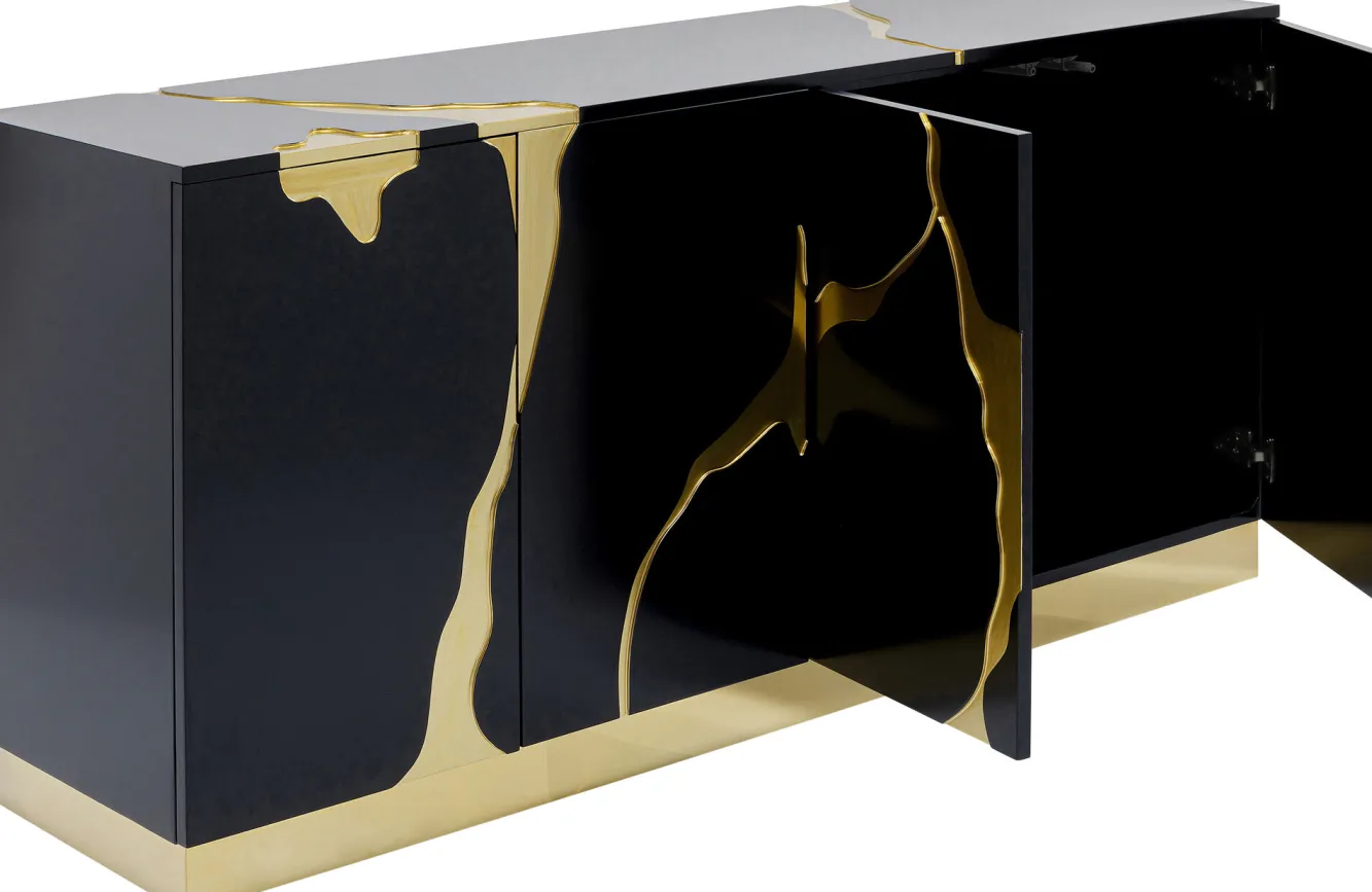 Komoda glamour czterodrzwiowa czarno-złota 165 cm