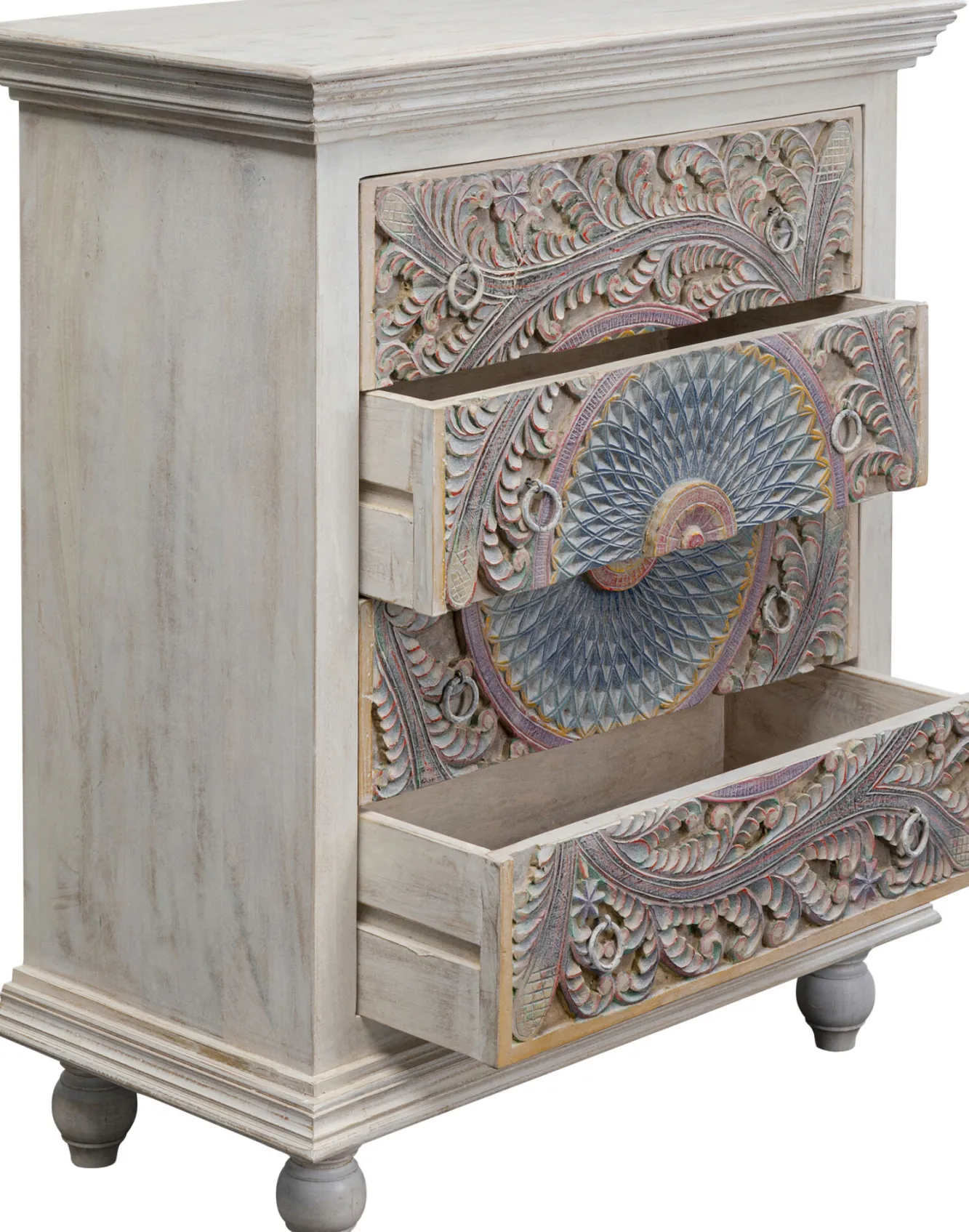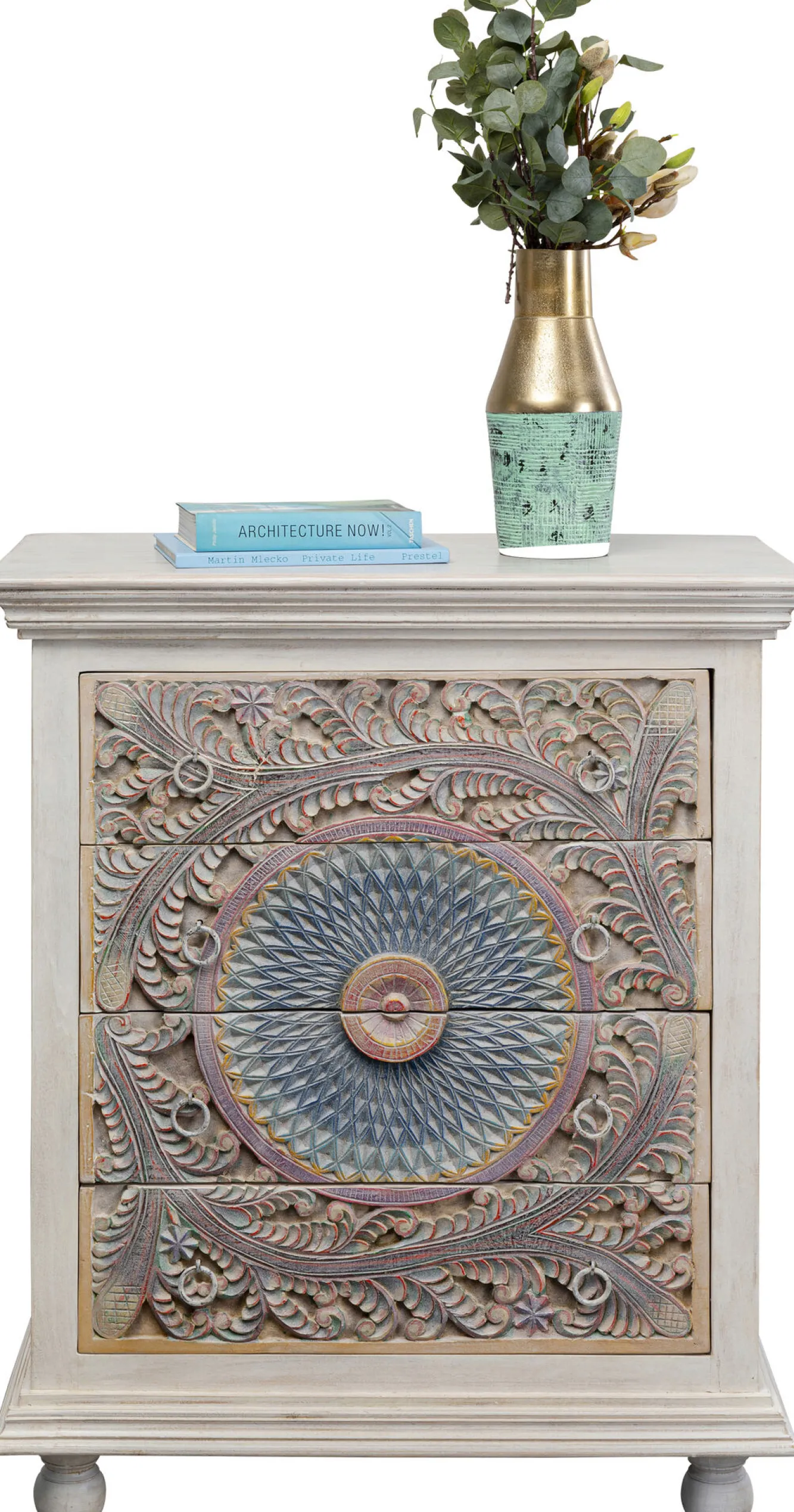 Komoda z 4 szufladami z drewna mango front kolorowy 90×110 cm
