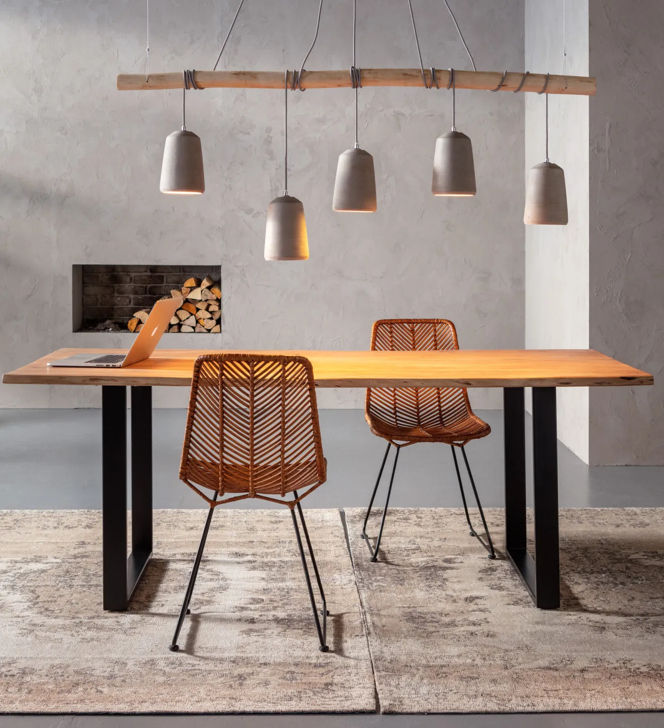 Żelazne nóżki w kolorze czarnym zapewniają stabilność krzesła i perfekcyjnie komponują się z naturalnym siedziskiem. Idealne do jadalni oraz salonu.