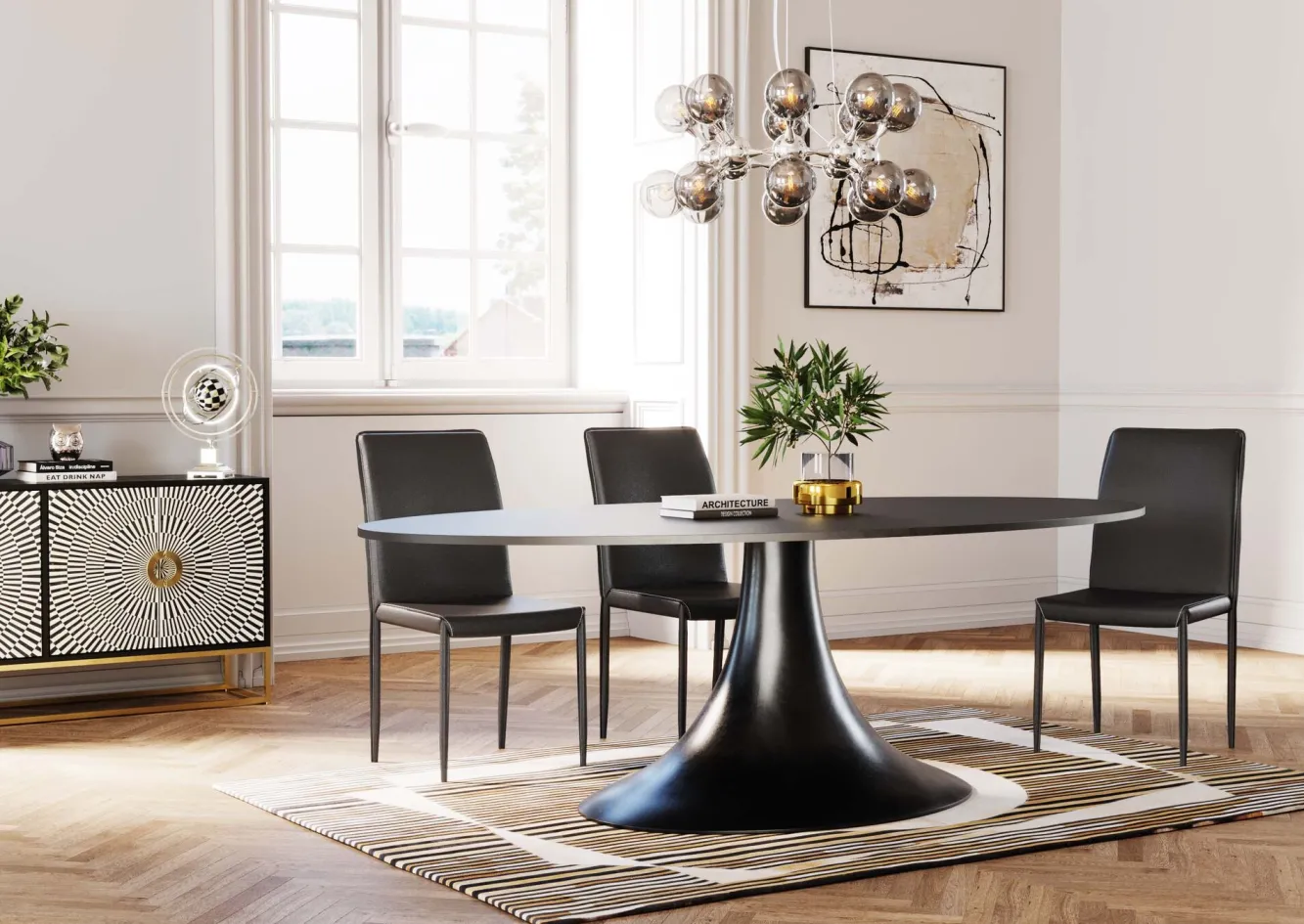 Nowoczesne metalowe krzesła w stylu minimalistycznym Milano oferują szeroki wybór wariantów – tutaj czarne krzesło tapicerowane skórą regenerowaną.