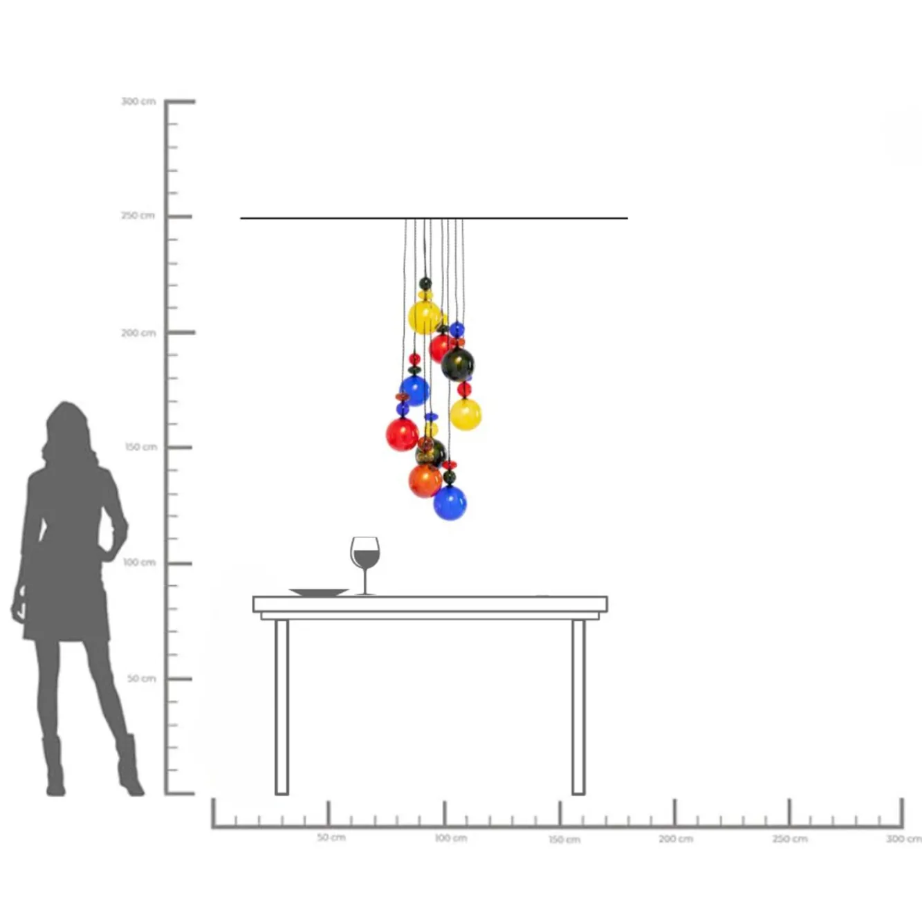 Lampa wisząca awangardowa klosze szklane kolorowe Ø44×150 cm