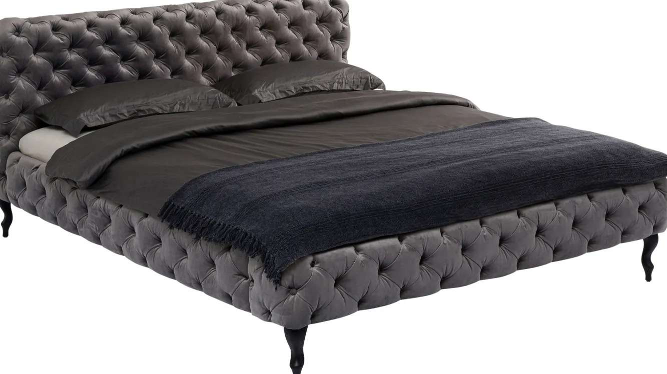 Łóżka z serii Desire dostępne są w trzech wariantach rozmiarowych i kilku wersjach kolorystycznych – tutaj pikowane łóżko tapicerowane w kolorze szarym z powierzchnią do spania o wymiarach 160×200 cm.
