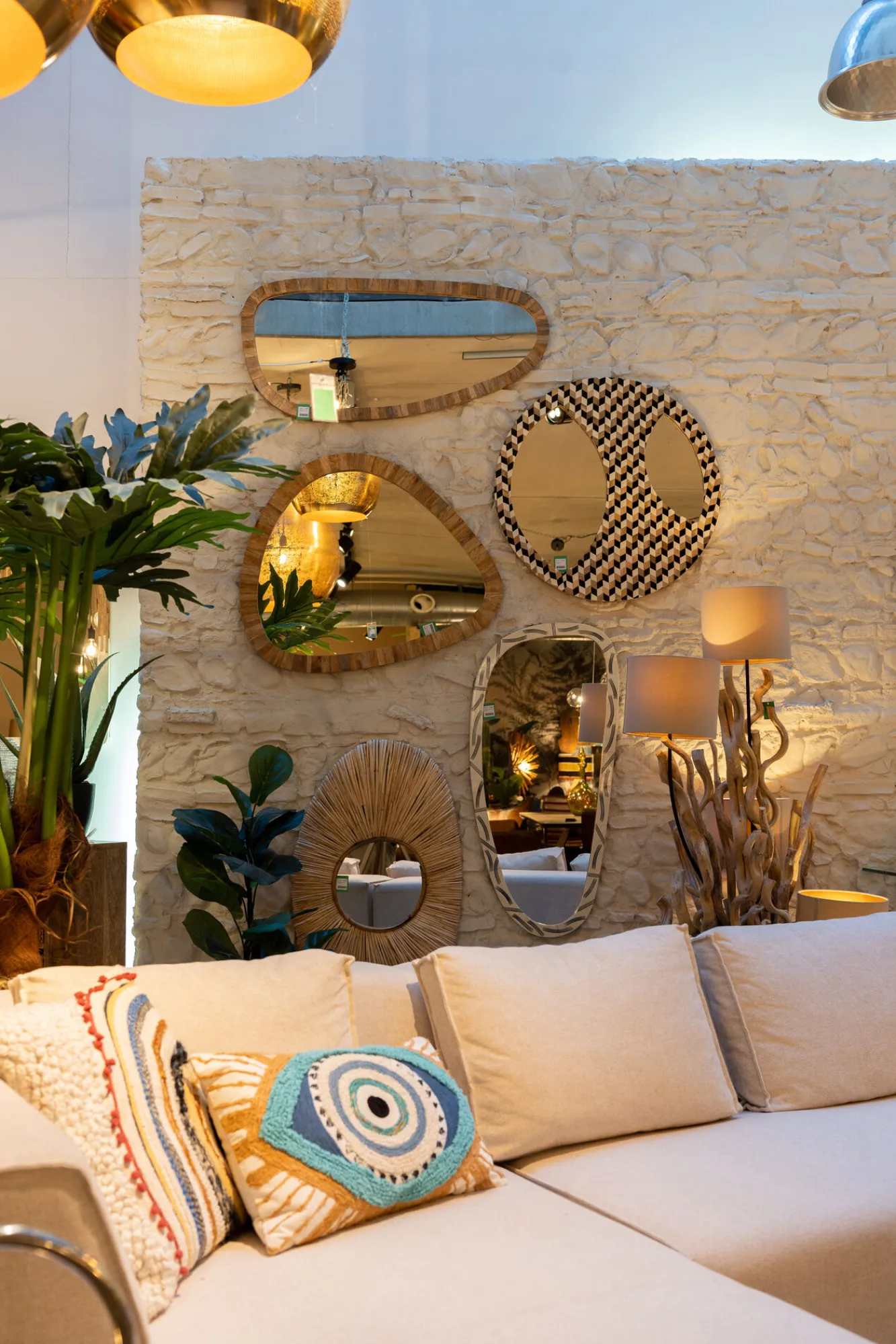 Lustro wiszące naturalne do salonu 43×93 cm Rama: płyta MDF – mango.
