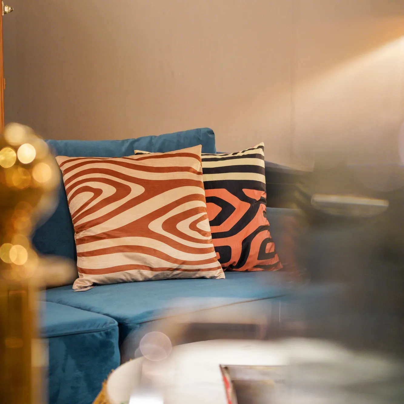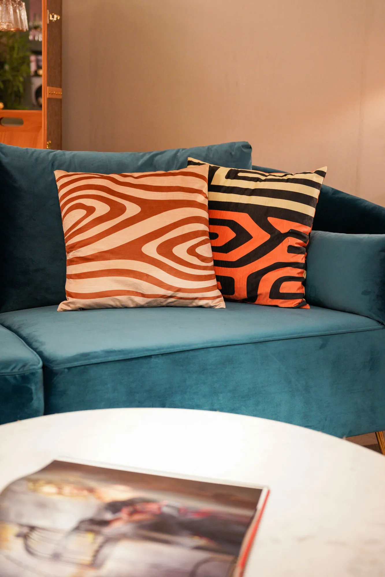 Poduszka dekoracyjna Abstract Shapes 45×45 cm biało-brązowa