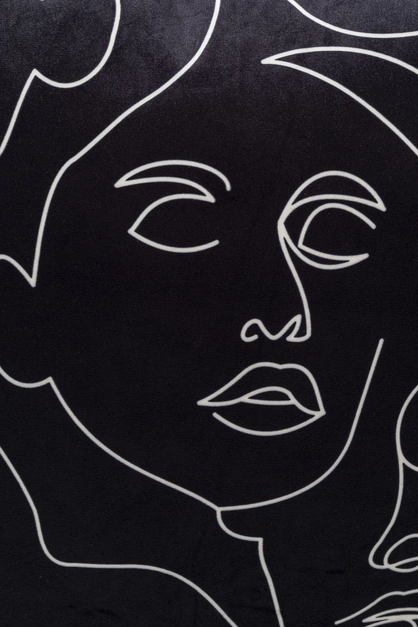 Poduszka dekoracyjna czarna aksamitna twarze 45×45 cm