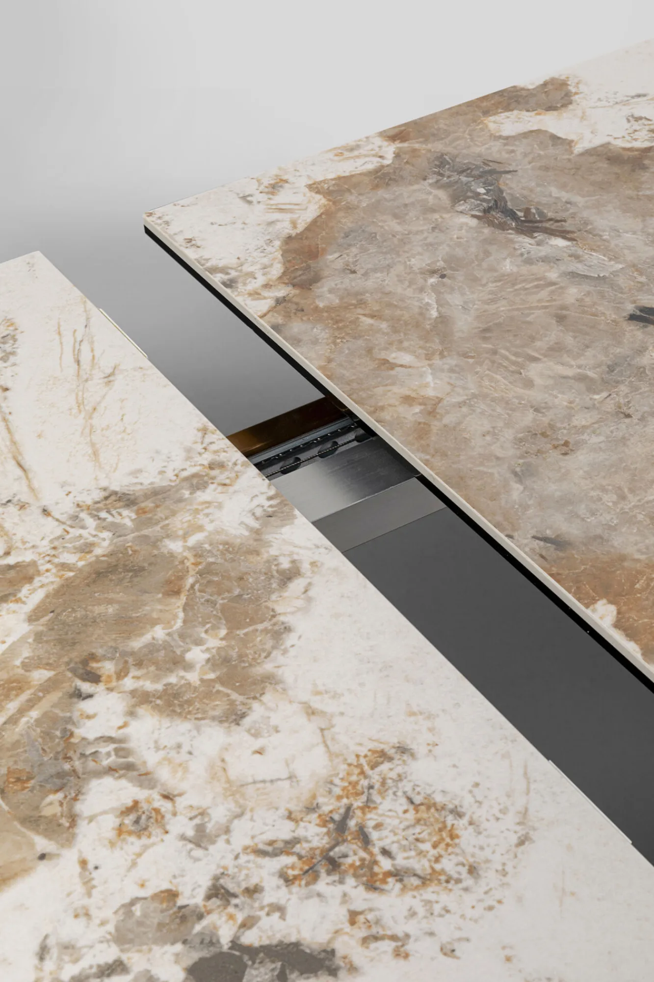 Stół rozkładany blat szkło i kamionka nogi stal nierdzewna 200-260×100 cm