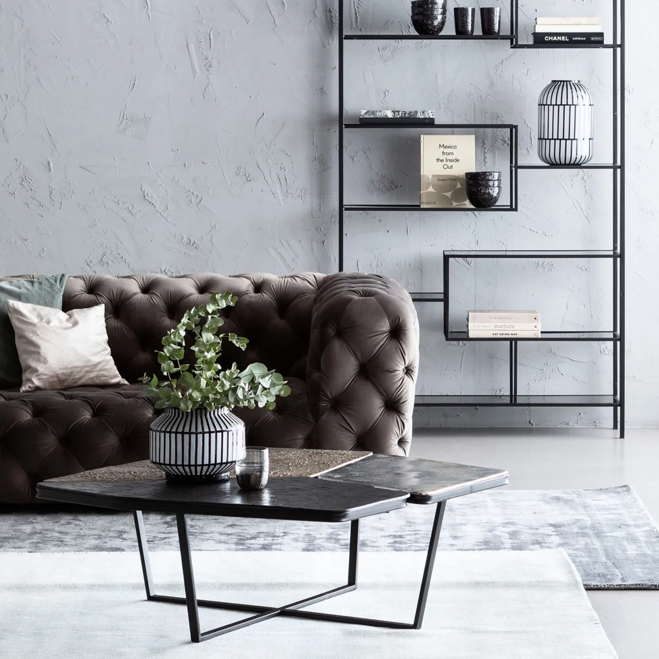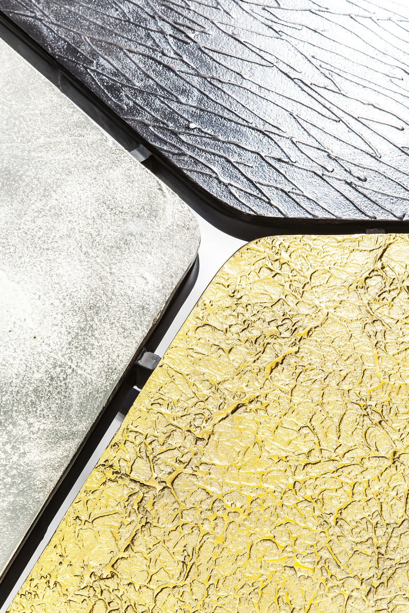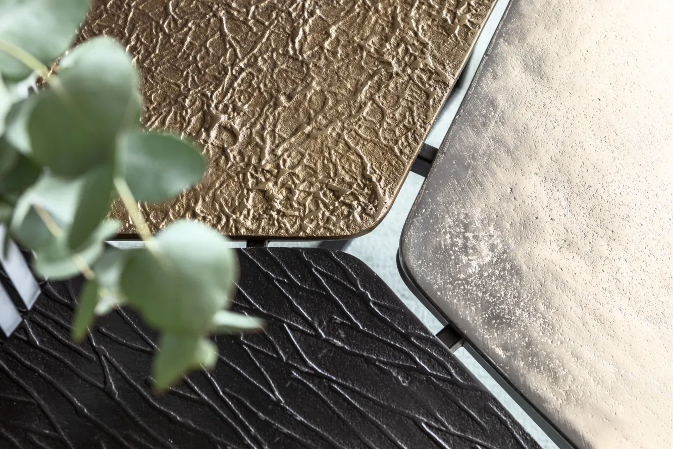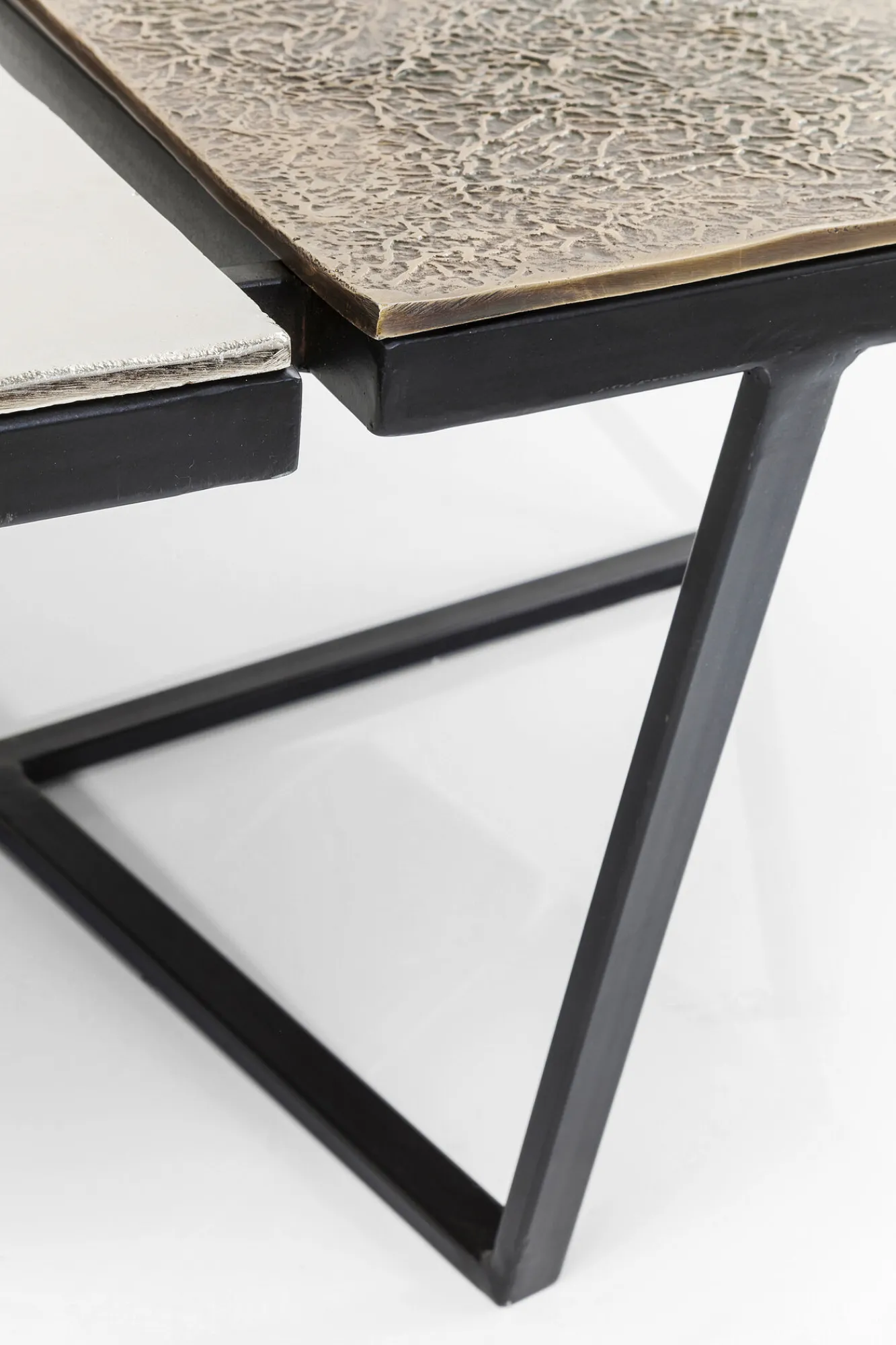 Jeśli jesteście miłośnikami innowacyjnego, nieszablonowego designu, ten awangardowy stalowy stolik kawowy w stylu nowoczesnym Patches bez wątpienia przykuje Waszą uwagę i zapragniecie mieć go w salonie. Za tą propozycją skrywa się, ikona współczesnego wzornictwa, firma KARE. Wizjonerska niemiecka marka, której przewodnikiem po świecie jest wyobraźnia, słynie z bezkompromisowości i trudnej do podrobienia estetyki. Tutaj producent, w efektownej wizualnie odsłonie, oddaje równie praktyczny mebel na stalowych, solidnych nogach typu krzyżak w kolorze czarnym. Łączą się one z asymetrycznym blatem z aluminium, podzielonym na 3 części w różnych kolorach: brązu, niklu oraz mosiądzu. Z tej nietypowej kompozycji wyłania się oryginalny stolik kawowy doskonale odpowiadający nowoczesnym koncepcjom aranżacyjnym