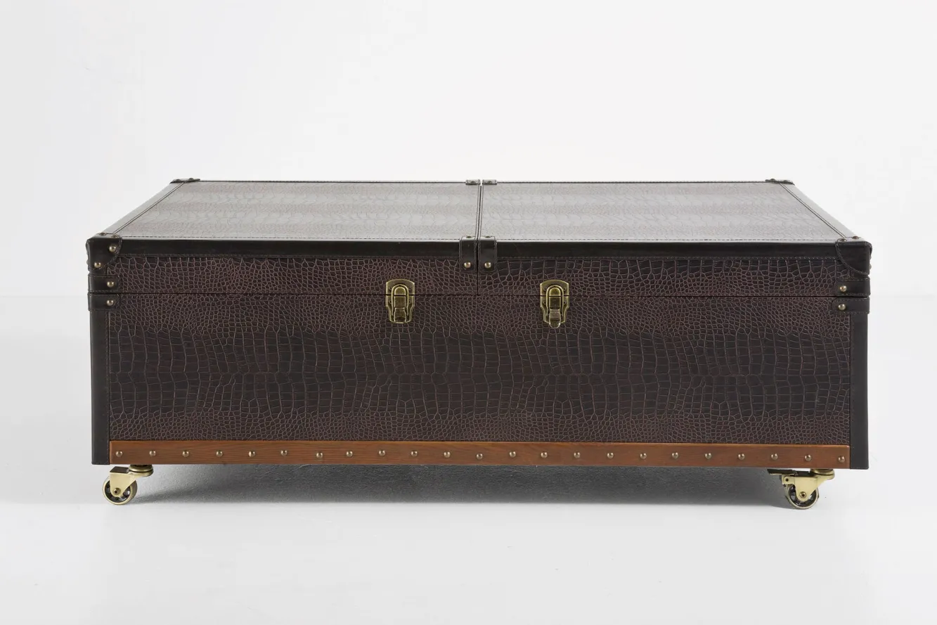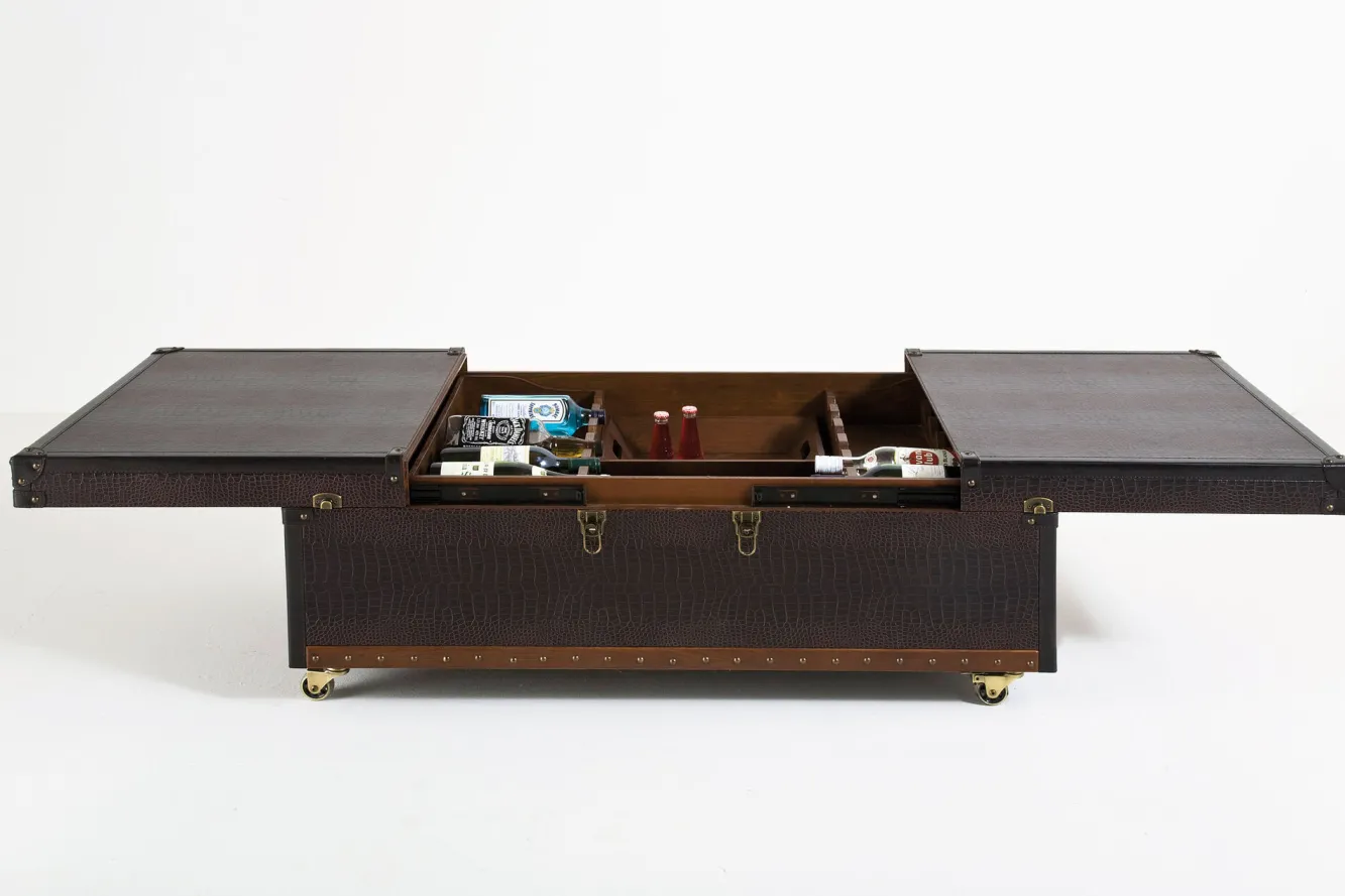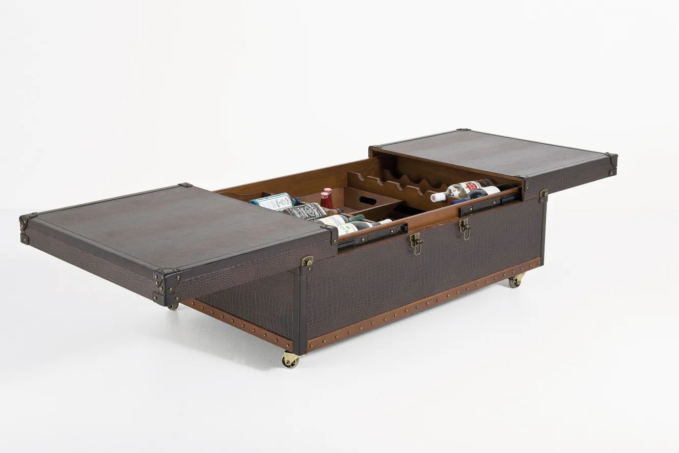 Fashion KARE Design Stolik kawowy rozkładany Bar Colonial 120×75 cm brązowy ekoskóra – KARE