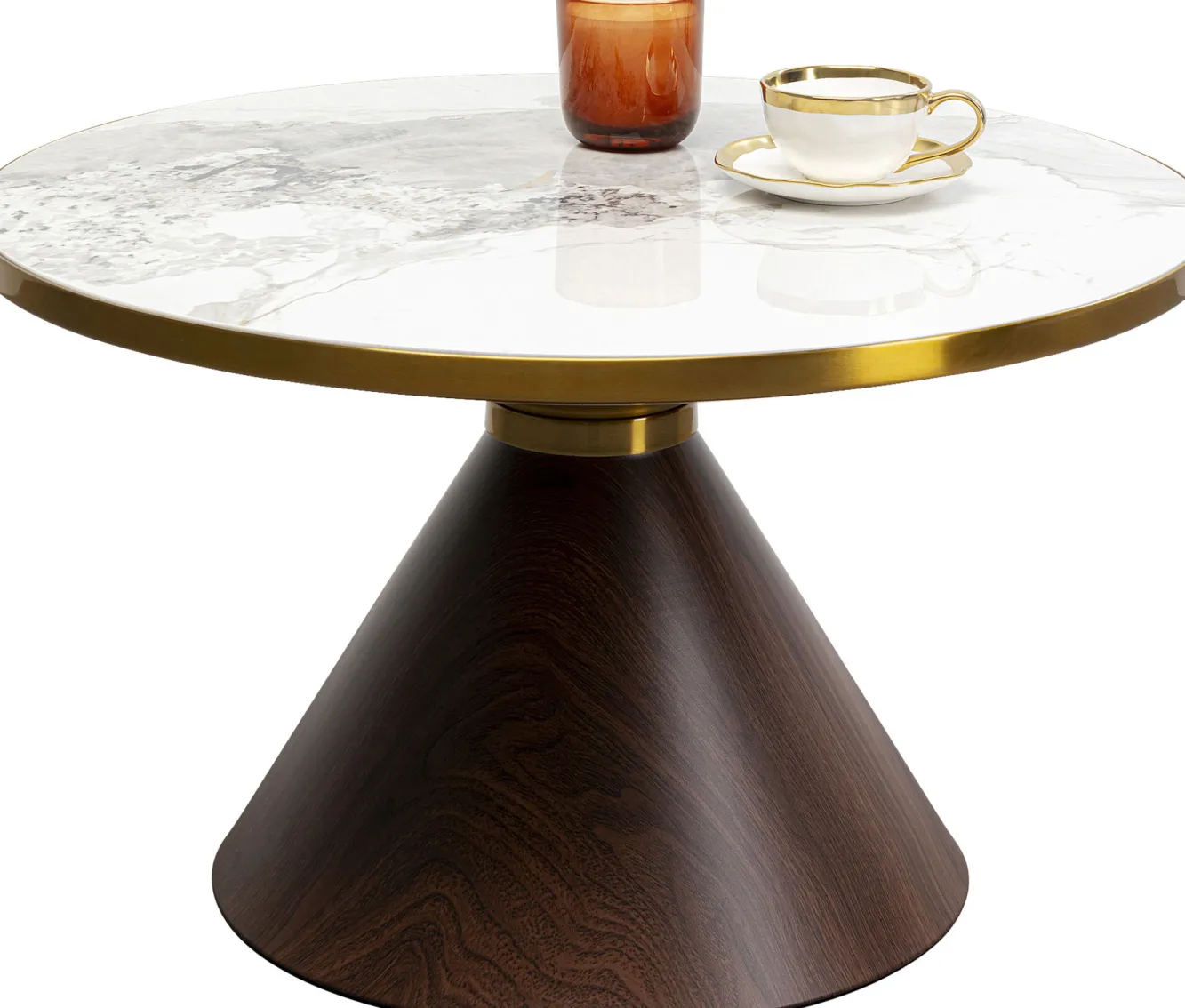 Stolik kawowy z ceramicznym blatem podstawa brązowa Ø70 cm