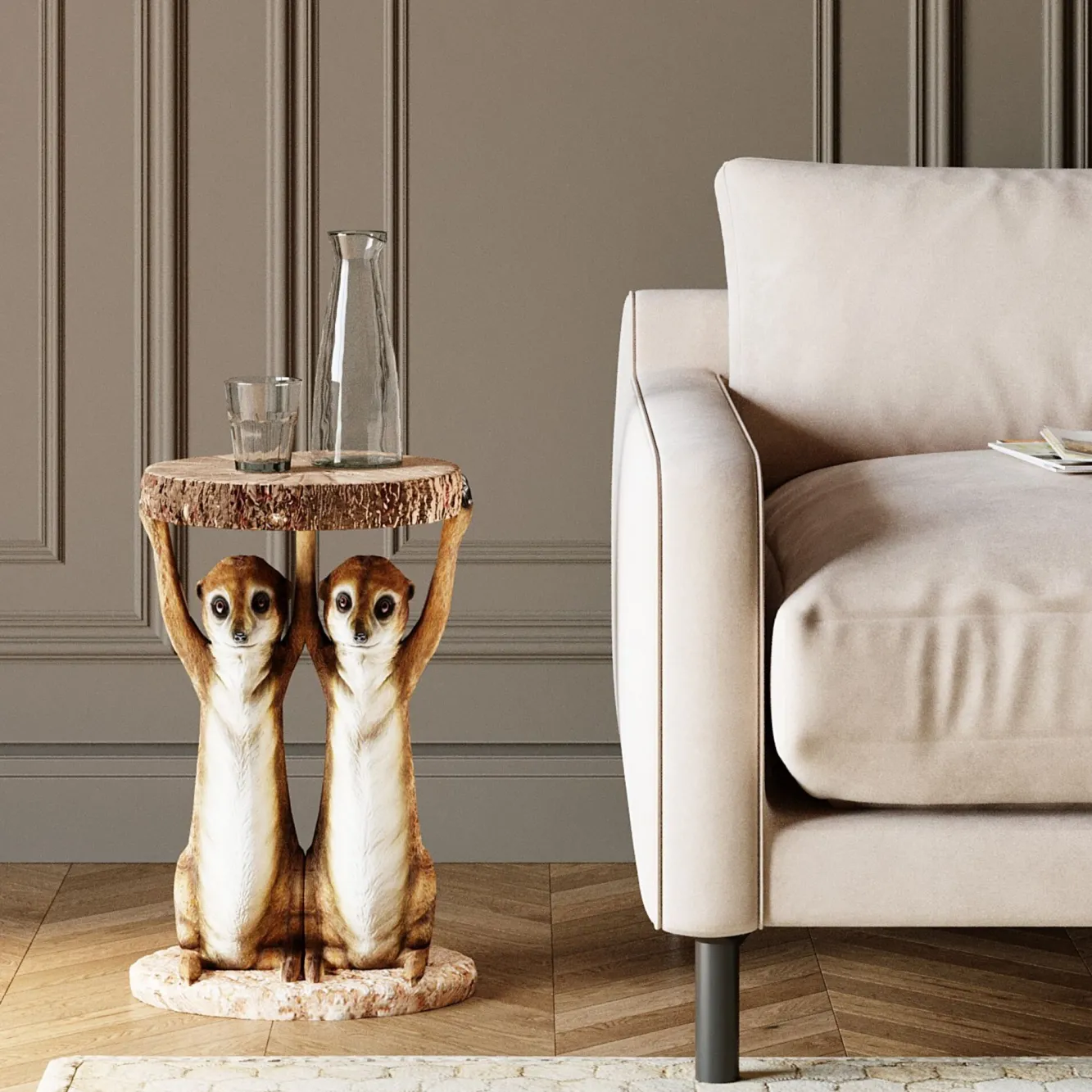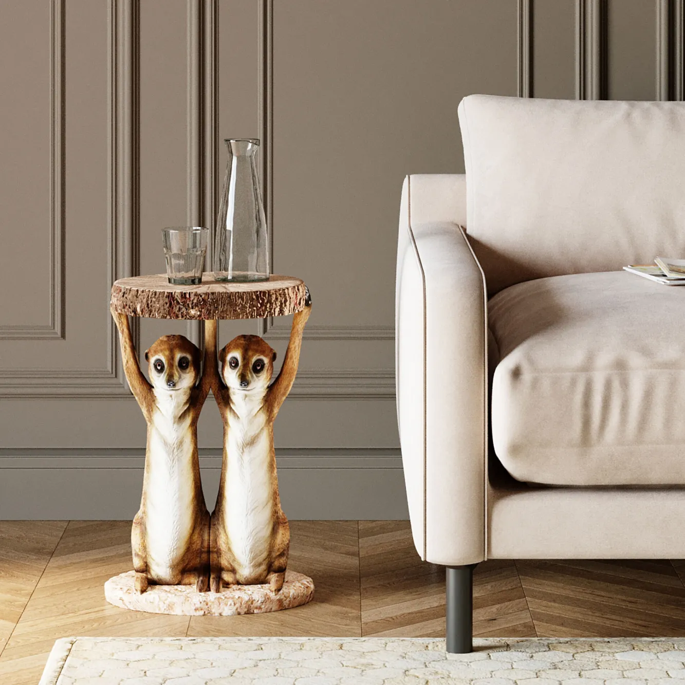 Jeśli lubisz oryginalne dodatki i aranżacje wychodzące poza utarty szablon danej konwencji, stolik kawowy Kare Design z serii Meerkat Sisters będzie dla Ciebie idealnym wyborem. Jego oryginalny design z pewnością przyciągnie spojrzenia Twoich gości.