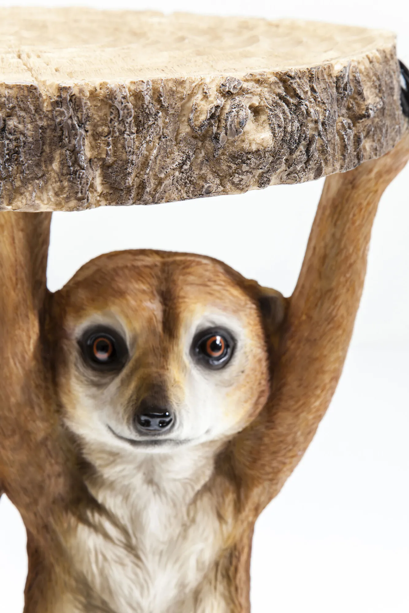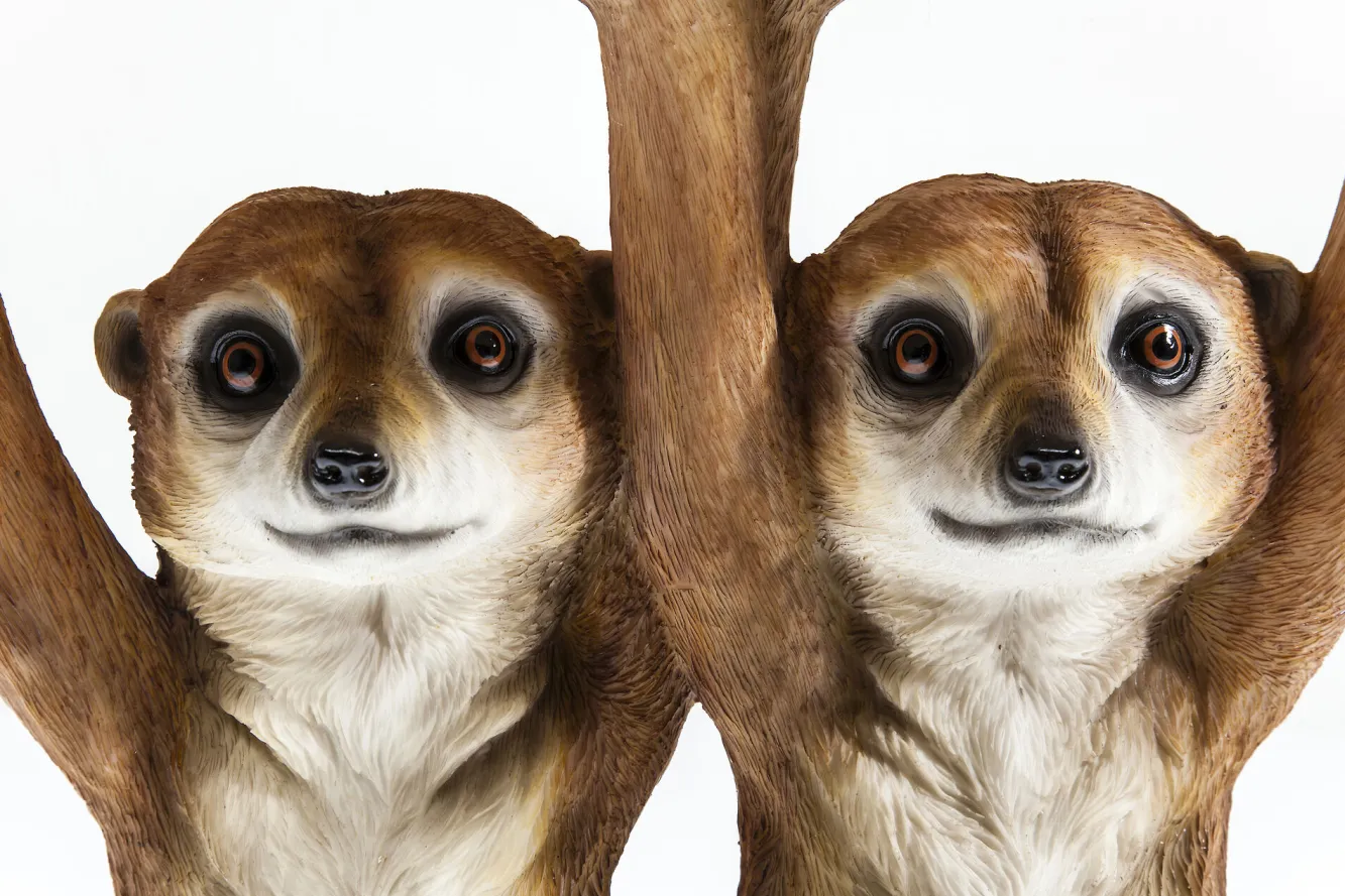 Stolik kawowy Meerkat Sisters Ø33 to unikatowy projekt jednej z najbardziej twórczych marek – marki Kare Design. Sukcesywnie odzwierciedlane w projektach zamiłowanie do nietuzinkowych form i wzornictwa, a także tworzenia kompilacji różnorodnych materiałów, sprawia, że spośród dostępnych w naszym sklepie modeli nawet najbardziej wymagający klienci mogą swobodnie wybrać w pełni odpowiadający ich potrzebom produkt. Prezentowany stolik kawowy w stylu nowoczesnym to podszyty odrobiną dobrego humoru mebel, dedykowany nie tylko awangardowym aranżacjom, ale przede wszystkim amatorom nawiązujących do natury elementów wyposażenia wnętrz. Stolik kawowy z tworzywa sztucznego o podstawie przedstawiającej dwie filigranowe, trzymające okrągły kawałek drewna surykatki, nie tylko wyróżni się na tle całej aranżacji, ale także podniesie poziom dekoracyjności wnętrza.