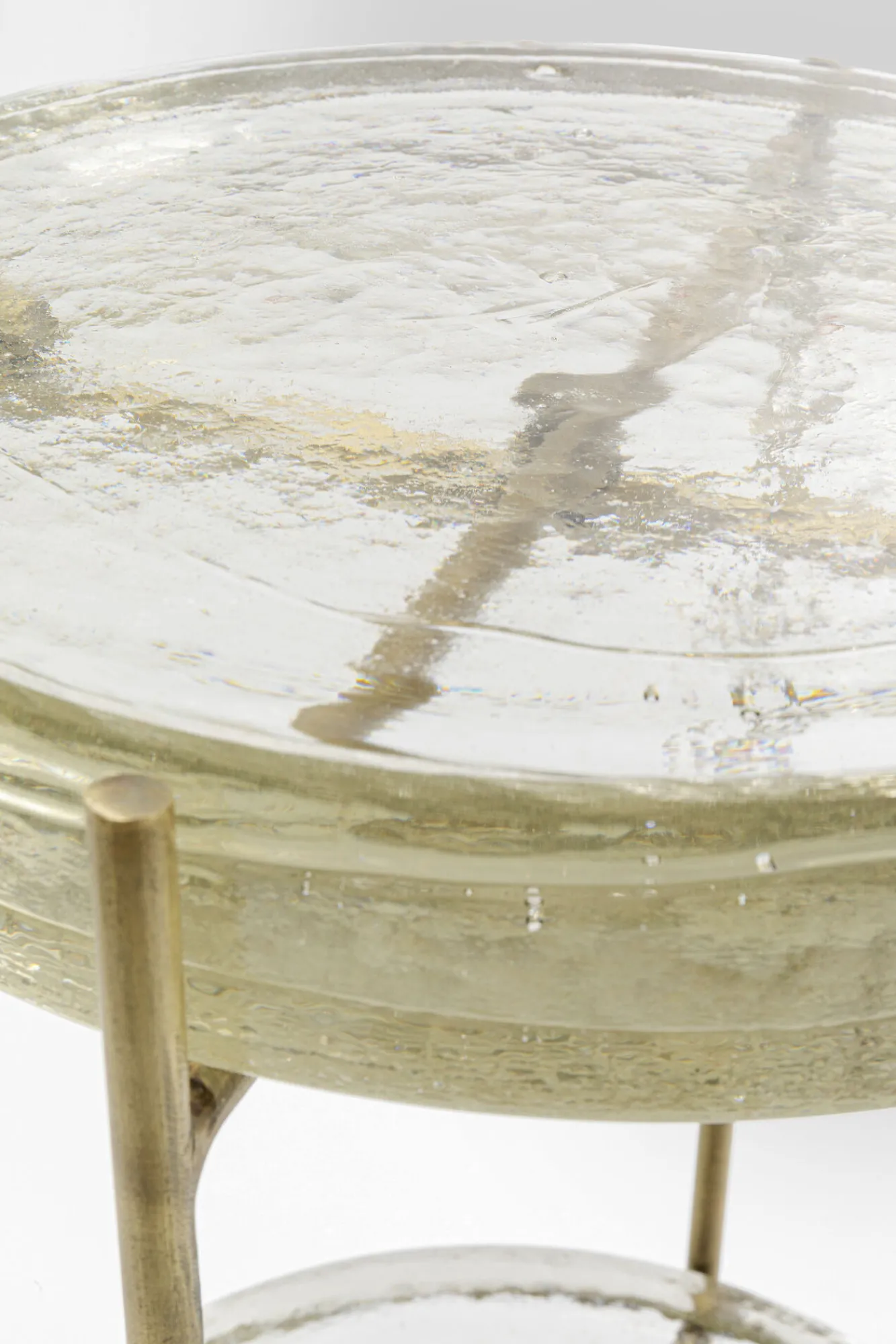 Stolik pomocniczy Ice Double Ø30xH50 cm złoty – blat szklany Blat, półka: szkło transparentne.Nogi: stal mosiężna…