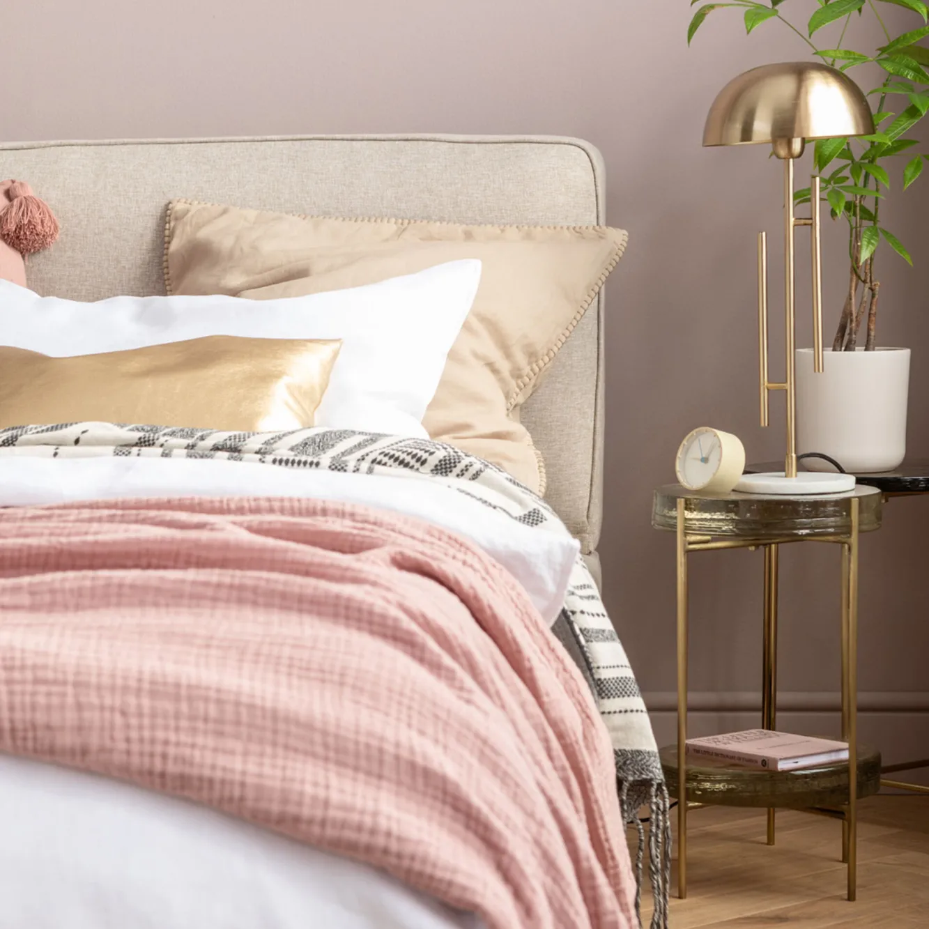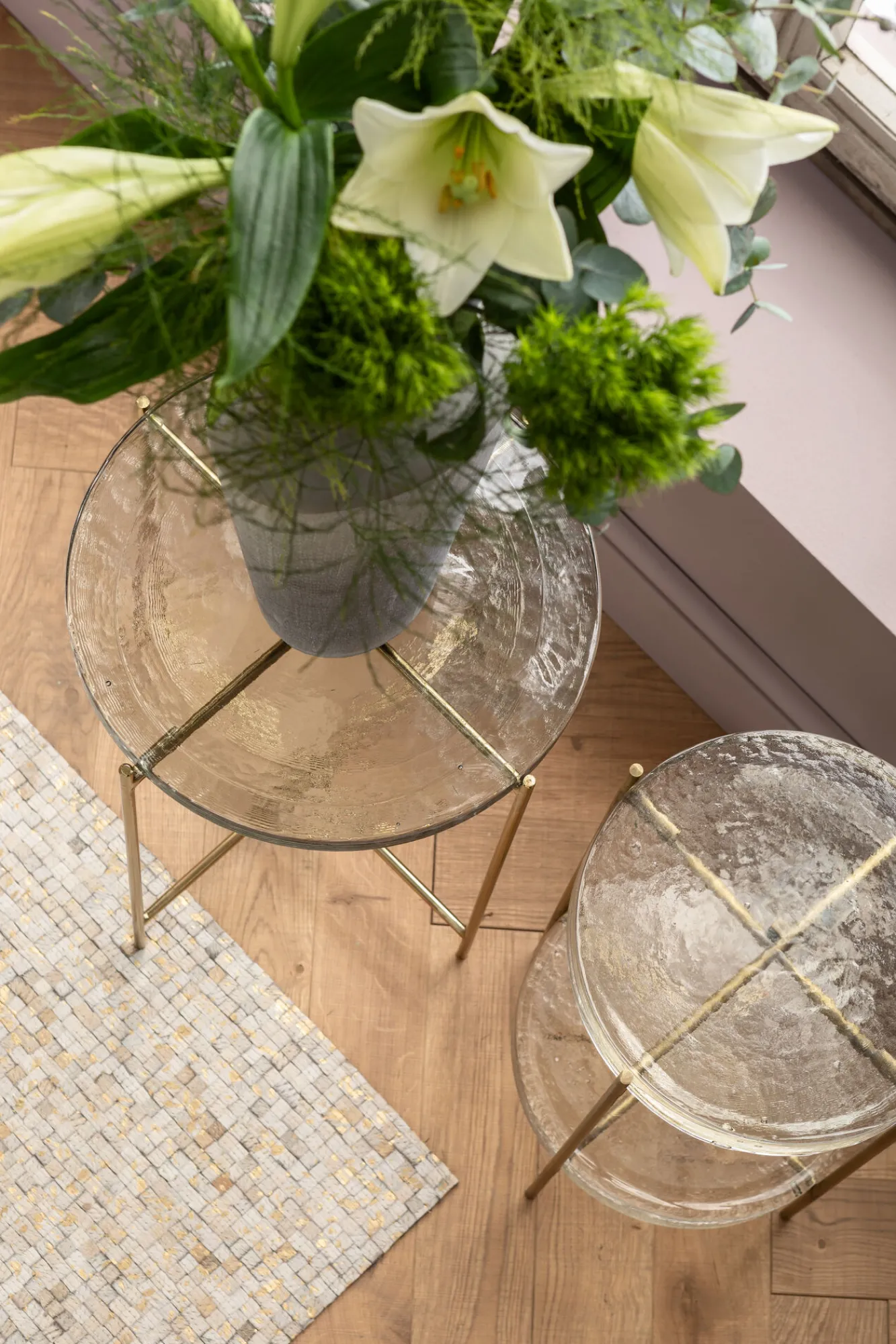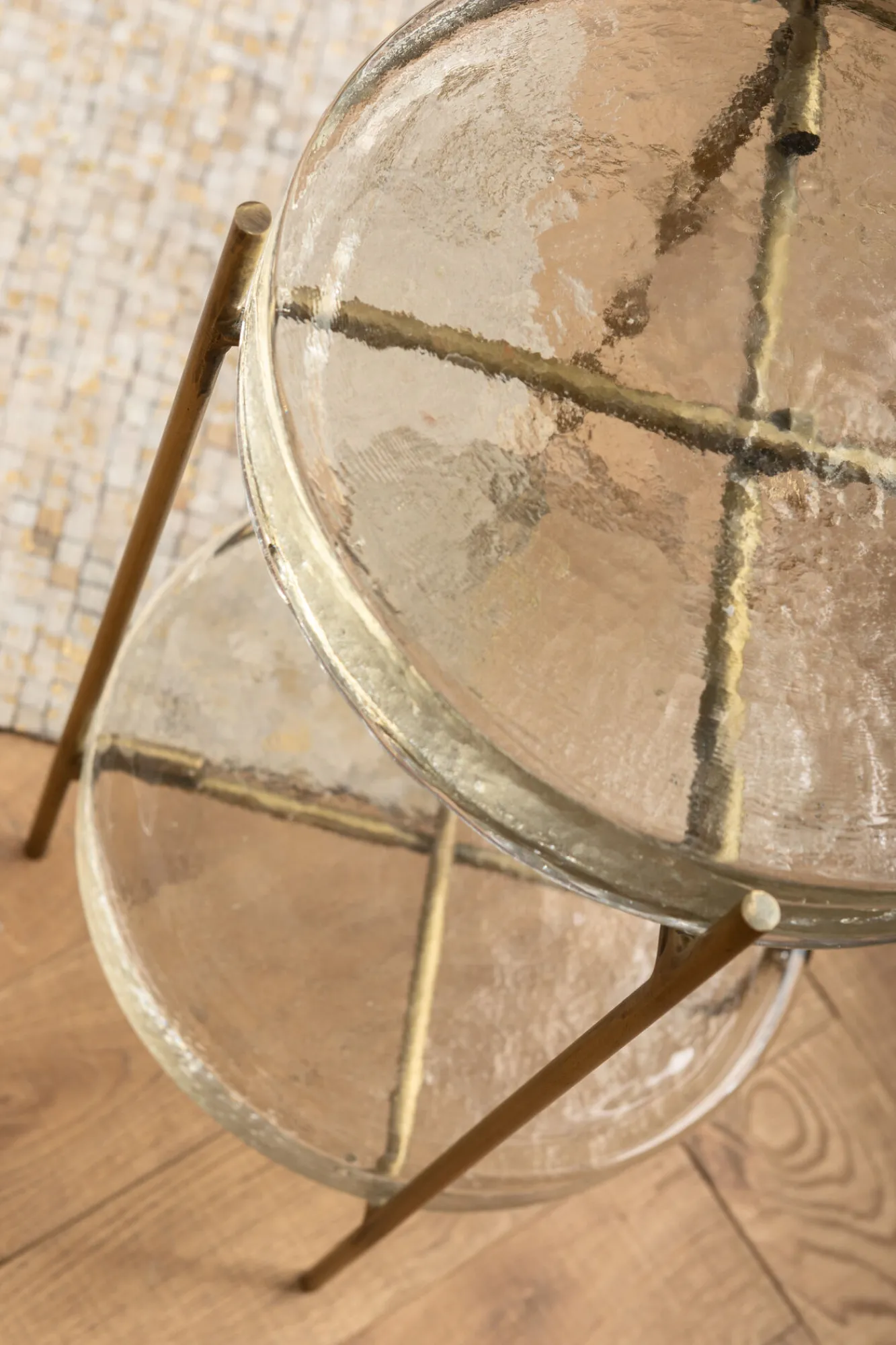Stolik pomocniczy Ice Double Ø30xH50 cm złoty – blat szklany