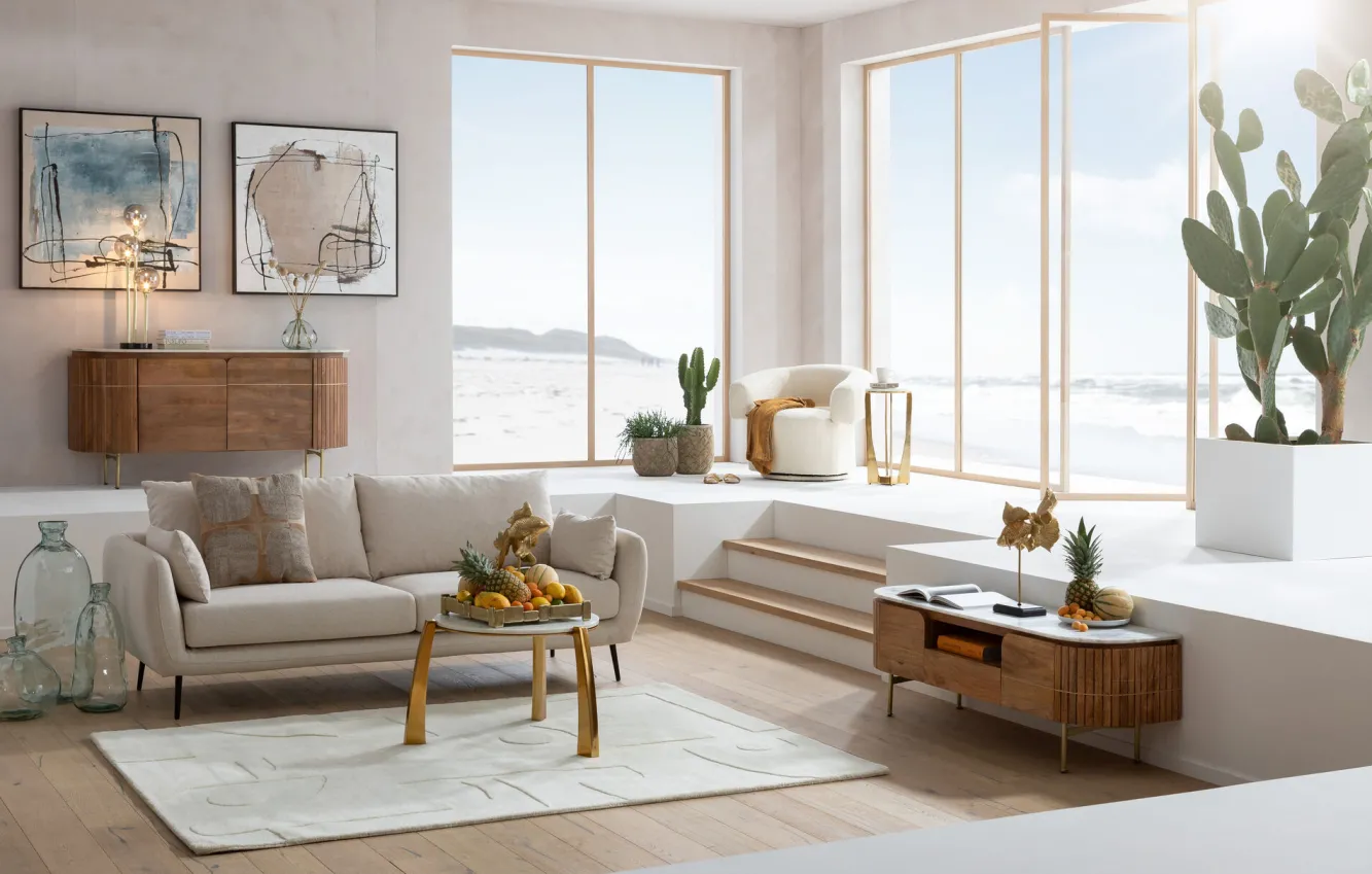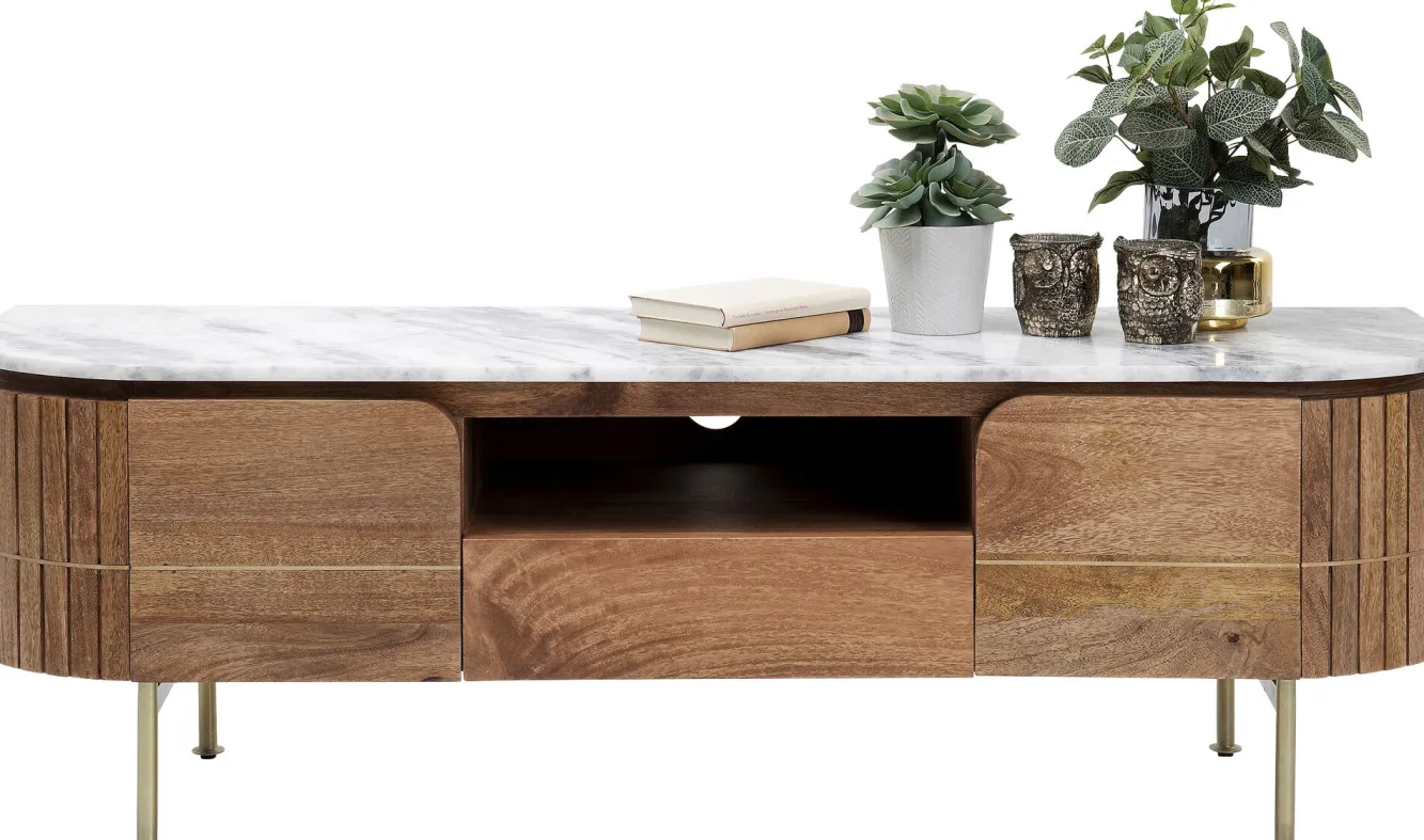Szafka RTV Grace 145×48 cm drewno mango – blat marmur