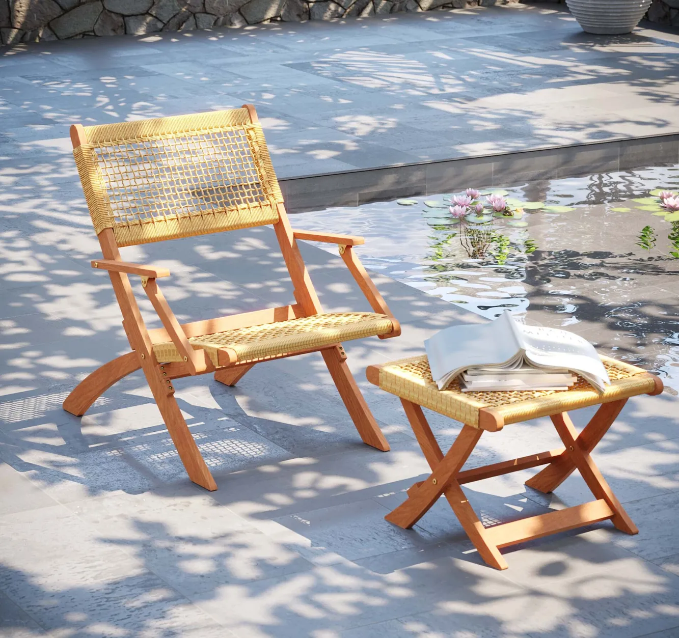 Taboret – podnóżek ogrodowy składany Rio De Janeiro 45×44 cm drewno akacjowe Rama: drewno akacjowe olejowane.Plecionk…