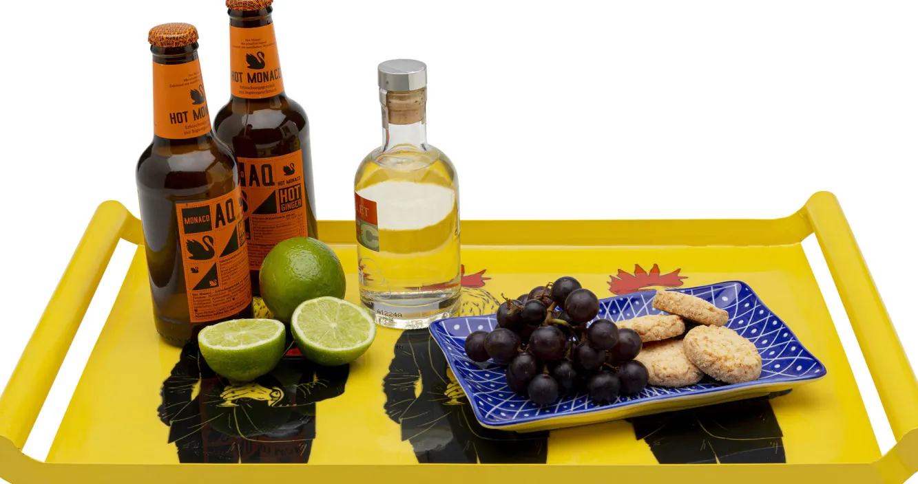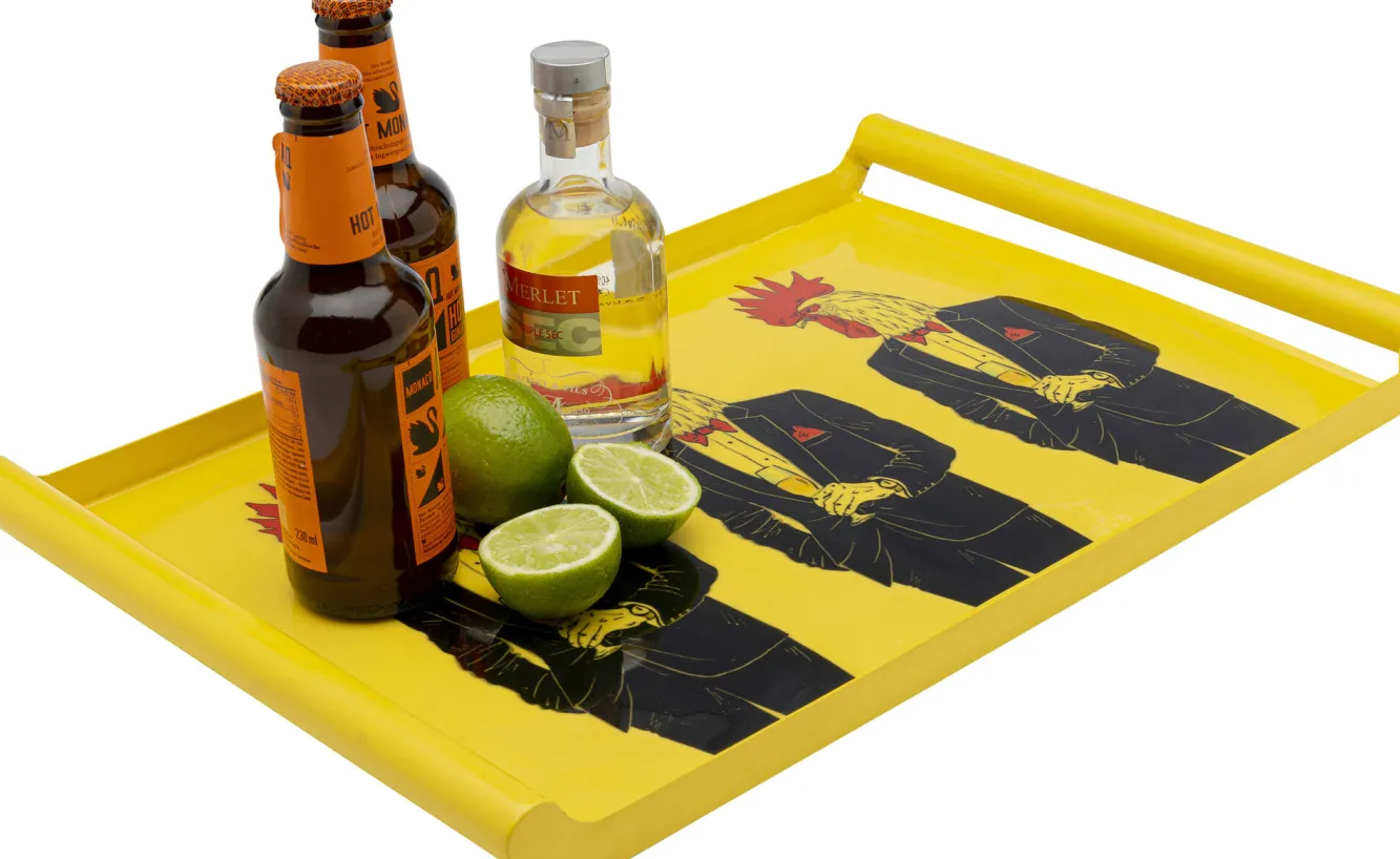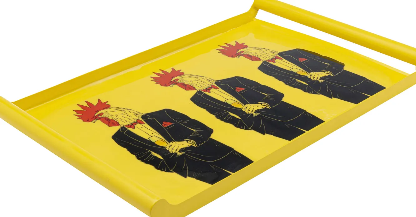Taca z uchwytami stalowa żółta koguty w garniturach 49×30 cm Ręczne wykonanie. Każdy egzemplarz jest niepowtarzalny…