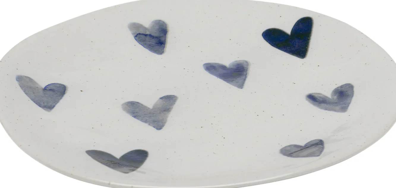 Talerz deserowy motyw niebieskich serc Ø22 cm Materiał: kamionka szkliwiona.Produkty wykonane z kamionki mogą nieznac…